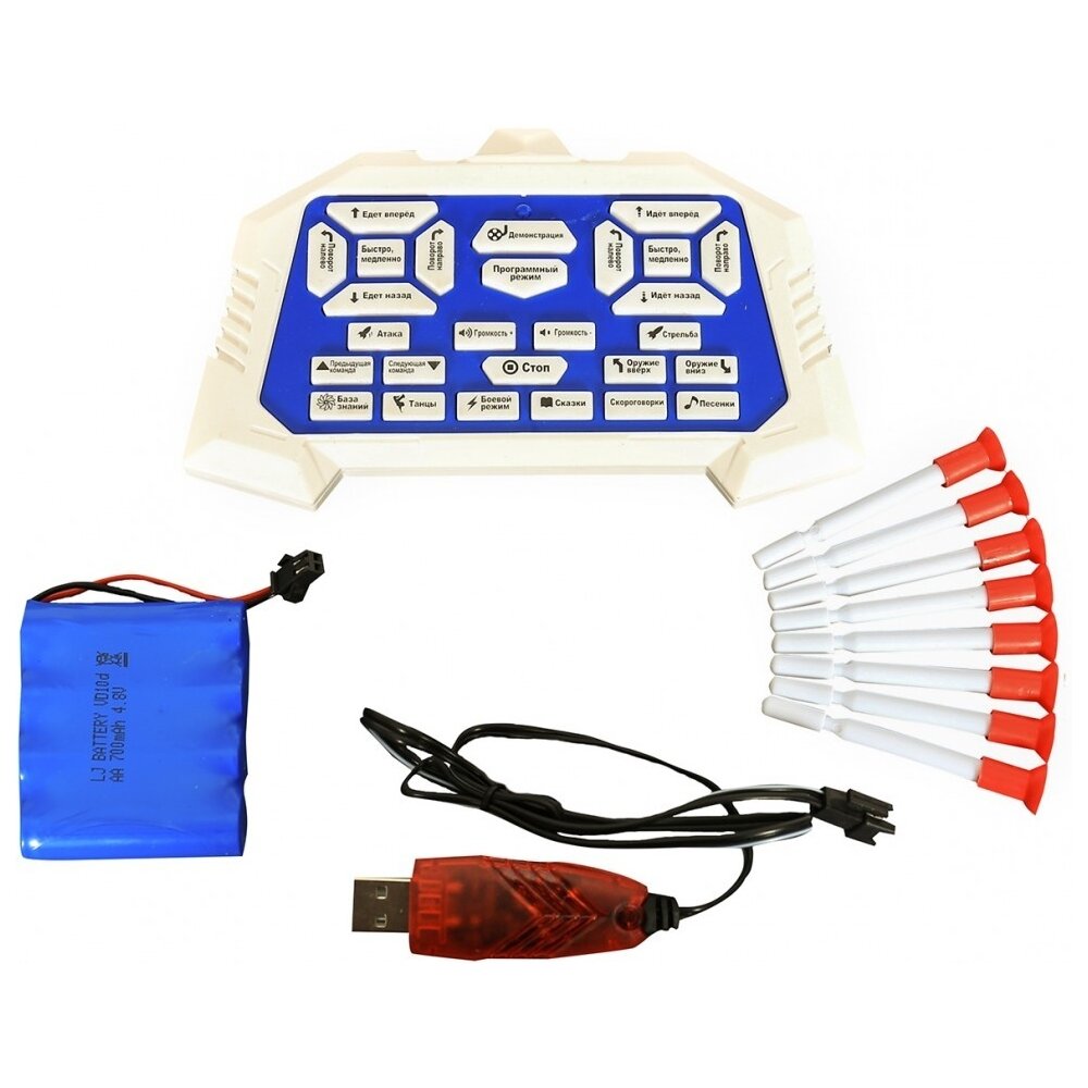 Радиоуправляемый робот предлагает ребенку проявить воображение и отправиться в увлекательное космическое путешествие. Потрясающий робот на радиоуправлении может двигаться самостоятельно и обладает уникальным механизмом, который позволяет ему стрелять ракетами и обеспечивает его безоговорочную победу в любом сражении. Особенности: Рука с бластером поднимается и опускается Робот поворачивается в разные стороны Танцует Шагает и скользит Стреляет из бластера Запускает диски Говорит русские фразы (Капитан жду ваших команд и пр.) Пульт дистанционного управления 2.4G Дальность действия пульта: до 15 метров Питание: аккумулятор 4.8В Характеристики: Длина: 120 мм Ширина: 270 мм Высота: 340 мм Вес: 890 гр Комплектация поставки: Модель радиоуправляемая полностью собранная Интерактивный боевой робот CRAZON на русском языке Пульт дистанционного управления Ракеты для стрельбы Аккумулятор Зарядное устройство Инструкция Рекомендуется докупить: 2 АА батарейки для пульта управления