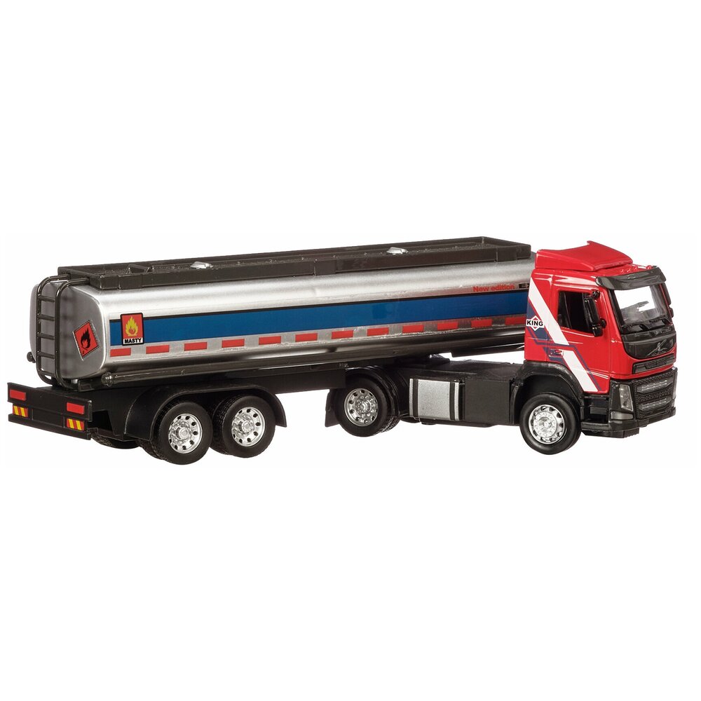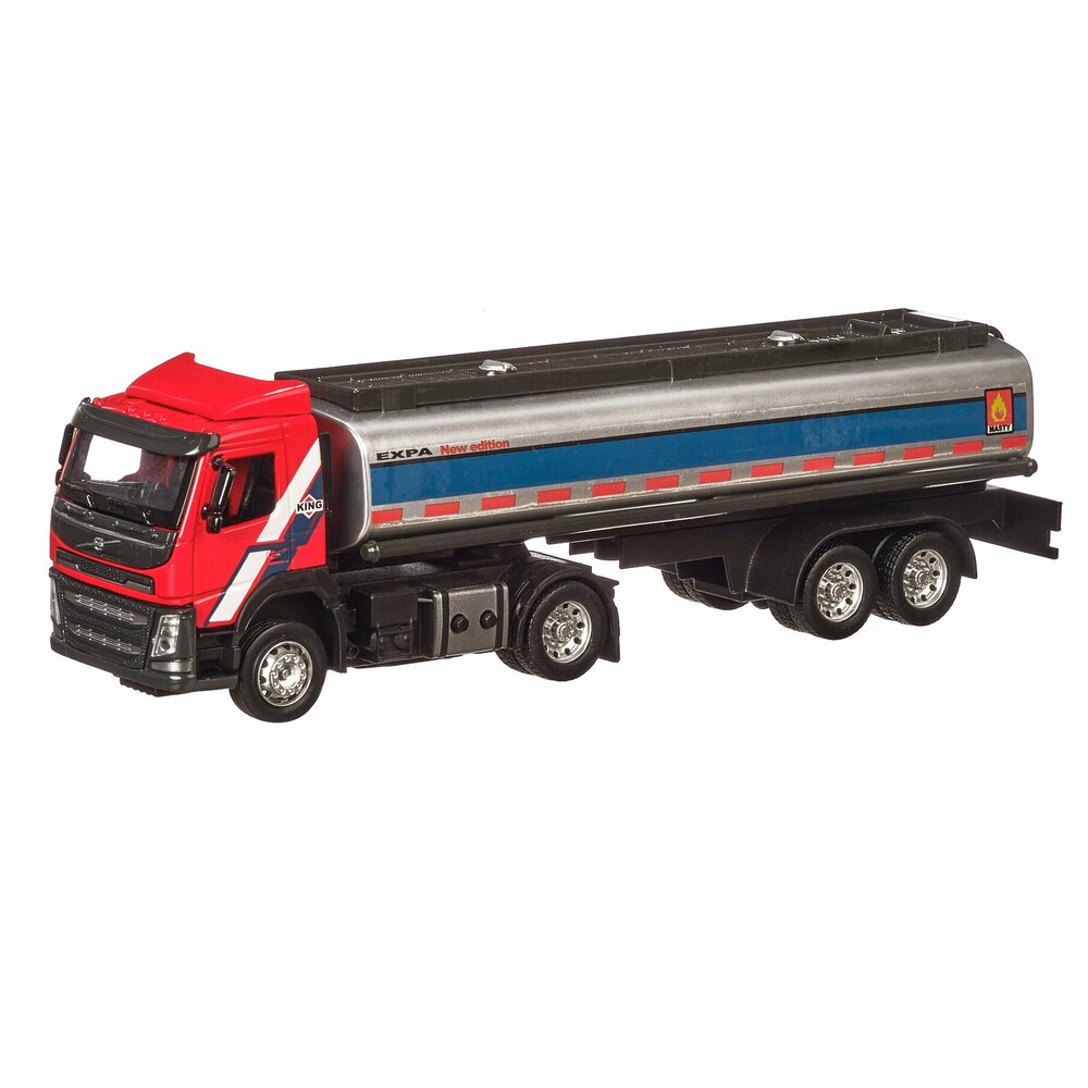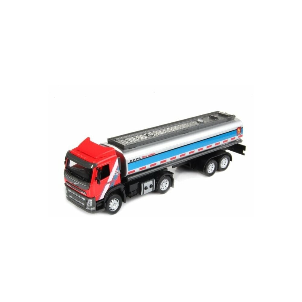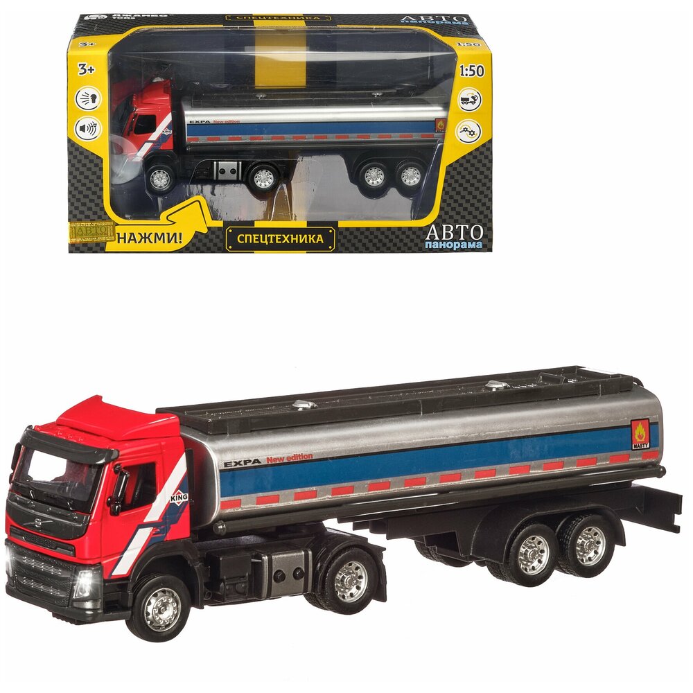Машинка Автопанорама цельнометаллическая (кузов и кабина) Volvo бензовоз, масштаб 1:50 ,откидывается кабина, свет, звук, цвет красный
