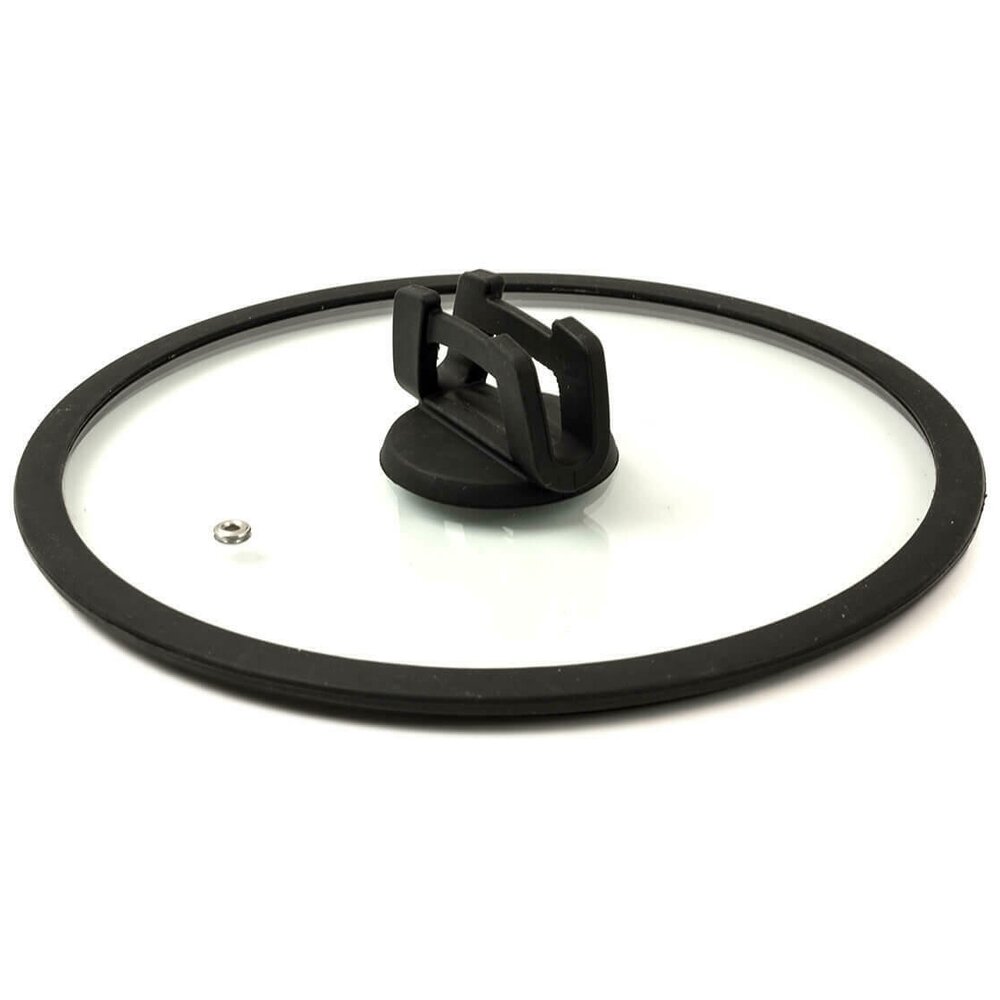 Крышка стекляннная с ручкой для фиксации лопатки силикон/обод ПЛОСКАЯ 28см черная