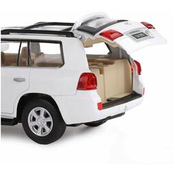 "Металлическая лицензионная машинка Lexus LX570 - уменьшенная копия известного кроссовера в масштабе 1:32. Модель машинки детально проработана и выполнена с легко узнаваемым дизайном как у оригинала, которую часто можно встретить на улицах города. У машинки открывается багажник и передние двери. Если нажать на корпус или открыть двери, загорятся фары и включится звук мотора. Игрушка оснащена инерционным механизмом. Чтобы она поехала вперед, ее нужно немного откатить назад. С такой машинкой ребенок может устраивать гонки с друзьями. Игрушка развивает мелкую моторику, реакцию и координацию движения. Она надолго займет внимание ребенка или пополнит коллекцию любителя иномарок. Характеристики: Возраст: от 3-х лет Масштаб: 1:32 Материал корпуса: металл Цвет: белый Функции: инерционный механизм, открываются двери, багажник, свет, звук Размер коробки: 17,5 х 13,5 х 9 см Размер машинки: 15 х 6 х 5,5 см"