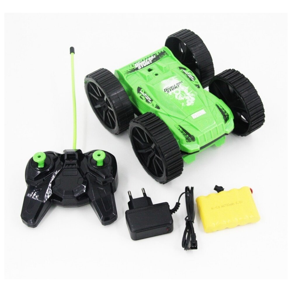 Радиоуправляемая машина Перевертыш - 5588-603 - это удивительная машинка на радиоуправлении способна вращаться, переворачиваться и продолжать движение. Такая способность обеспечивается за счет специально разработанной конструкции, состоящей из 4 колес. Перевертыш 5588-603 очень стильный и яркий, от него придут в восторг как мальчишки, так и девчонки. Управление 4-канальное, не требует особых знаний и к нему можно очень быстро привыкнуть. Питание перевертыша за счет мощного аккумулятора, подзарядка которого осуществляется от сети. Игрушка для самых активных детей, чей образ жизни просто немыслим без приключений, азарта, веселья. Баталии с этой заводной игрушкой во дворе соберут много зрителей! Трюковые машинки-перевертыши - это юркие и веселые машинки для активных детей, которые любят подвижные игры. Уникальная способность машинок двигаться на высокой скорости и совершать разные трюки делают игру увлекательной и динамичной. Такая машинка надолго займет ребенка. Эта модель - 4-канальная 4 колесная трюковая машинка MKB на радиоуправлении с батареей в комплекте. Функции: движение вперед, назад, поворот влево, вправо, трюковое вращение на 360 градусов Комплектация: Машинка - перевертыш, цвет зеленый с черным Пульт управления 27 Mhz Аккумулятор Ni-Cd 6V 700 mAh Зарядное устройство Комплект требует: 2 батарейки типа АА для пульта управления