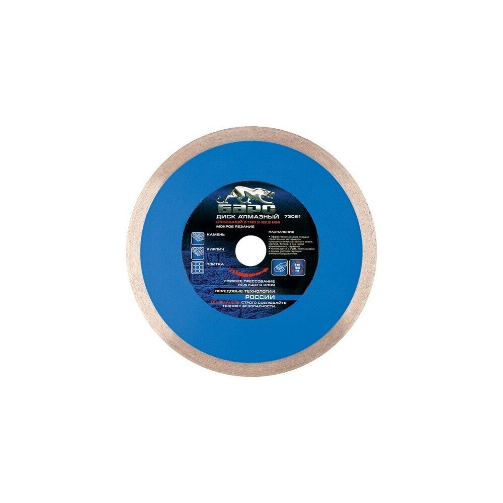 Диск алмазный, сплошной 125 х 22,2 мм, мокрая резка Барс