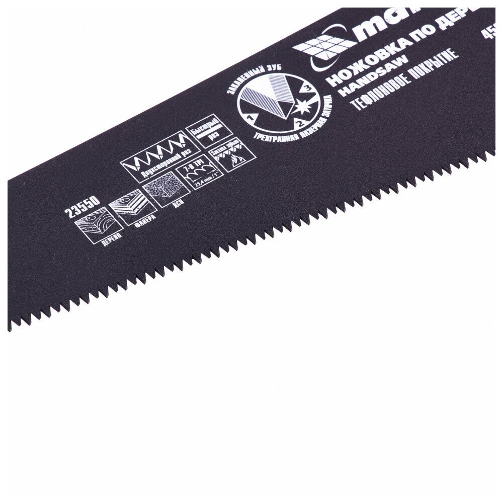 Ножовка по дереву, 450 мм, 7-8 TPI, зуб-3D, каленый зуб, тефлоновое покрытие полотна, двухкомпонентная рукоятка Matrix