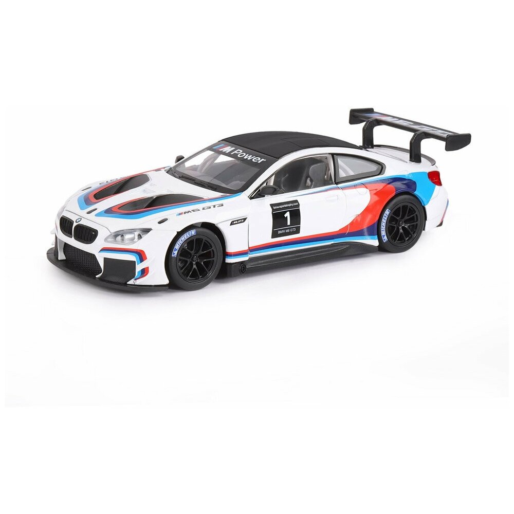 "Металлическая лицензионная машинка BMW M6 GT3 - уменьшенная копия знаменитого автомобиля для участия в гонках, которая прекрасно дополнит игрушечный автопарк. Модель машинки детально проработана и выполнена с узнаваемым ярким дизайном, со спортивным бампером, антикрылом, принтованными покрышками, как у оригинального спорткара. Модель выполнена в масштабе 1:24, у нее открываются передние двери и капот. Свободный ход колес позволяет катать игрушку практически по любой поверхности. Колеса машинки с резиновыми покрышками, их можно покрутить с помощью руля. При нажатии на корпус включается звук мотора и загораются фары, при открытии дверей включается звук сигнализации и загораются фары. Ребенок будет с удовольствием катать такую машинку дома и устраивать гонки с друзьями. Игрушка развивает скорость реакции, мелкую моторику, пробуждает интерес к технике. Автомобиль также может быть интересен взрослым коллекционерам. Характеристики: Возраст: от 3-х лет Масштаб: 1:24 Материал корпуса: металл Цвет: белый Функции: свободный ход колес, открываются передние двери, капот, свет, звук Батарейки: LR44 3 шт, идут в комплекте Размер коробки: 24,5 х 12,5 х 10,5 см Размер машинки: 20,7 х 8 х 5,7 см"