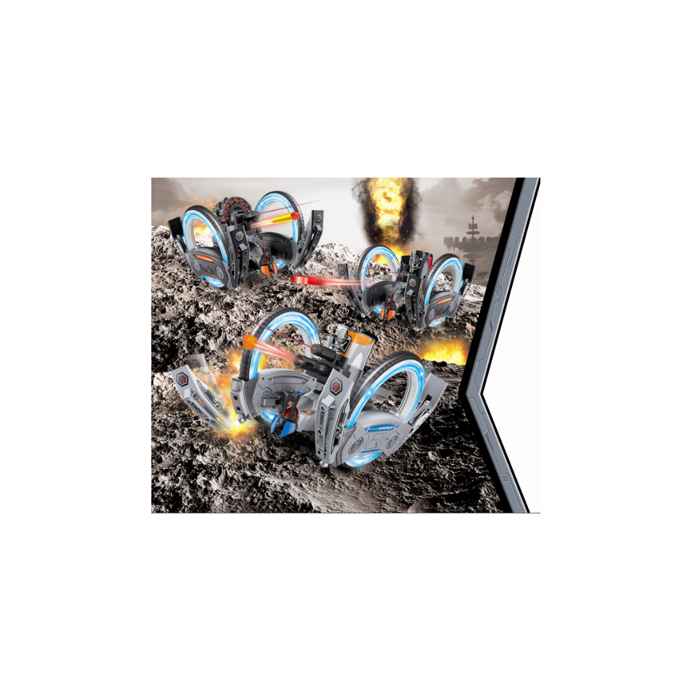 Радиоуправляемая боевая машина Keye Toys Space Warrior 2.4GHz (лазер, пульки) Радиоуправляемая боевая машина Keye Toys Space Warrior 2.4GHz (лазер, диски)- это новый робот из серии Space Warrior, который идеально подходит для RC сражений. Выполнена из прочных и эластичных материалов. ИК-порт со светодиодами позволяет точно прицелиться в соперника. Пусковая установка управляется пультом дистанционного управления. Во время боя, Вы стреляете во врага и после трех попаданий он выйдет из строя (потребуется перезапуск). Также у Вас есть возможность отрегулировать высоту пушки, что поможет точно поразить цель. Заднеприводные колеса позволяют двигаться во всех направлениях и делать повороты на 360°. Светодиодные индикаторы фар вовремя проинформируют Вас о том сколько жизней у Вас осталось. Модель оснащена амортизаторами, которые сглаживают неровности, позволяя вам мягко и непринужденно двигаться практически по любой поверхности. Развлекайтесь с детьми или устраивайте настоящие сражения с друзьями. Боевые машины Space Warrior от Keye Toys – отличный повод хорошо провести время и повеселиться! Особенности: Стреляет стрелами Оснащен светодиодными фонарями и звуковыми эффектами Есть броня Высота пушки регулируется вертикально от центра машины Перемещается в любом направлении, вперед, назад, повороты на 360 ° Светодиодные индикаторы фар указывают сколько жизни осталось Управляется пультом дистанционного управления 2.4G Комплектация: Боевая машина Пульт управления Пульки Наклейки Инструкция Необходимо докупить: 5 батареек типа AA 1.5 v для автомобиля. 4 батарейки типа АА 1.5 v для пульта.