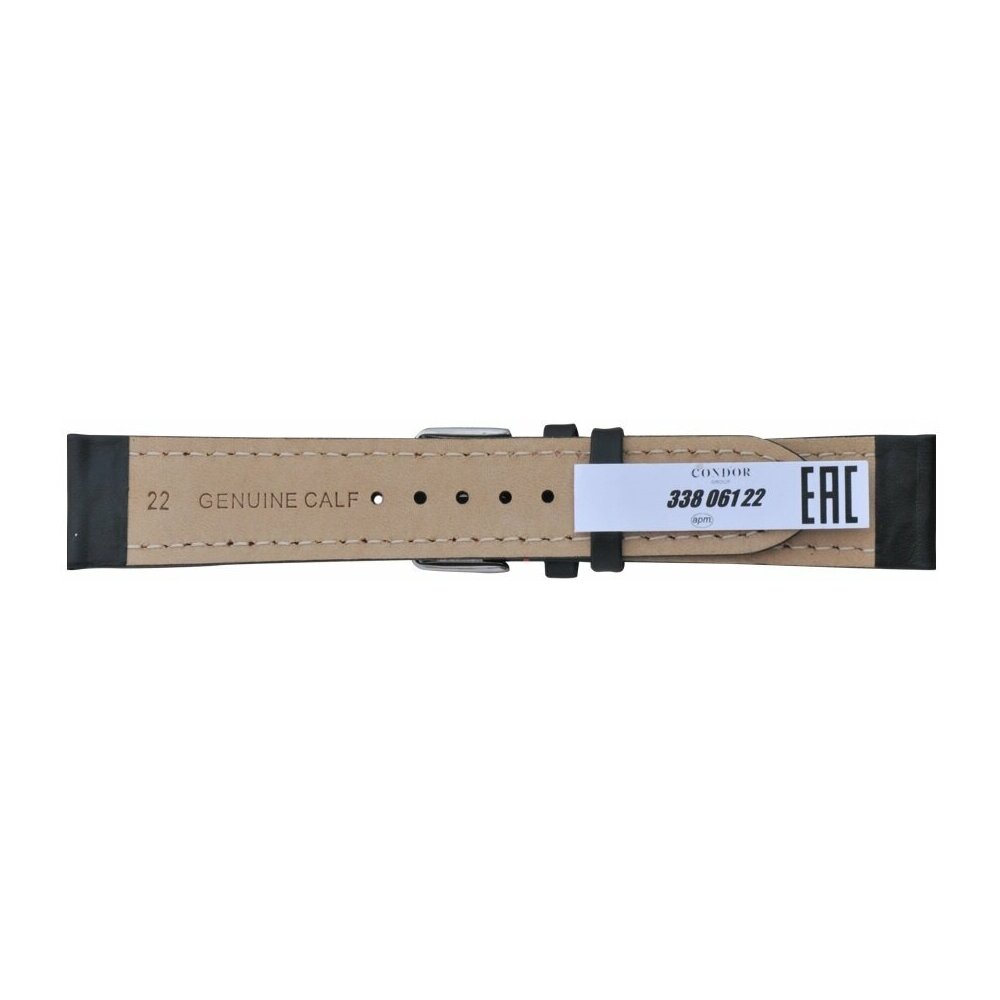 Высококачественный часовой ремешок, модель «Спорт», изготовлен из кожи теленка и так называемой «итальянской кожи», из-за высокого качества производства кожи на кожевенных предприятиях Европы. Цвет — черный, наружная поверхность ремешка — гладкая, полуглянцевая. По технологии изготовления — это «обрезной ремень». Производится в виде слоеного пирога, и состоит из трех, четырех слоев, обрезанных по краям. Эти боковые срезы покрыты эластичным компаундом и, дополнительно, прошиты красной нитью по краю ремешка, и вместе с жесткой внутренней прокладкой придают ремню крепкий, надежный и строгий вид. Конец длинной части ремешка имеет заостренную форму. Пряжка фактурная, элегантная, литая, удобная в носке, изготовлена из нержавеющей стали (INOX), с PVD покрытием, серебристого цвета. Эти ремешки предназначены для замены в наручных часах средней ценовой категории и выше.
