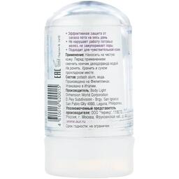 Гипоаллергенный натуральный дезодорант из алюмокалиевых квасцов устраняет запах пота, не закупоривая поры, тем самым сохраняя здоровье кожи. Убивает бактерии, вызывающие запах пота. Не оставляет следов на одежде. Хватает до полугода при ежедневном использовании.