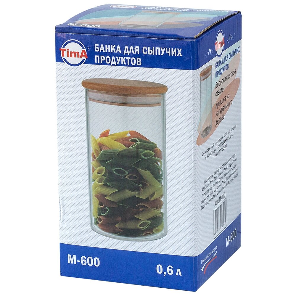 Банка для сыпучих продуктов с деревянной крышкой 600 мл TimA, М-600