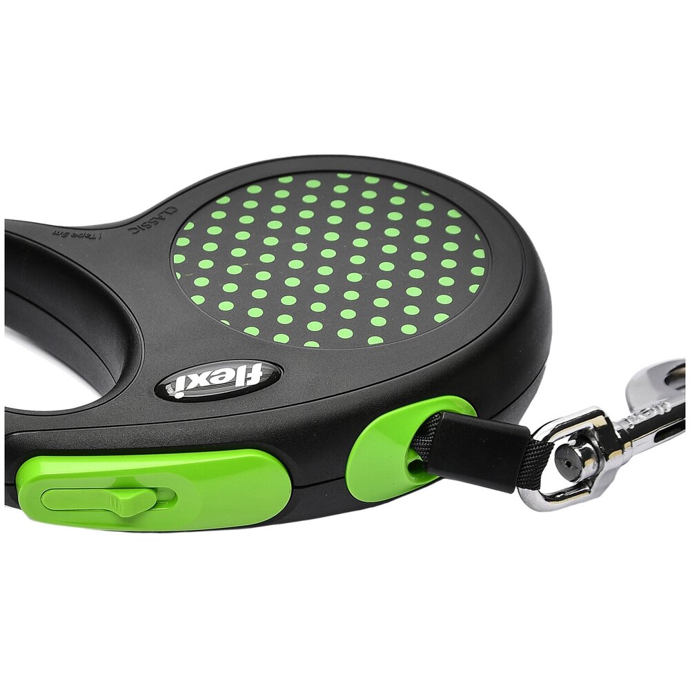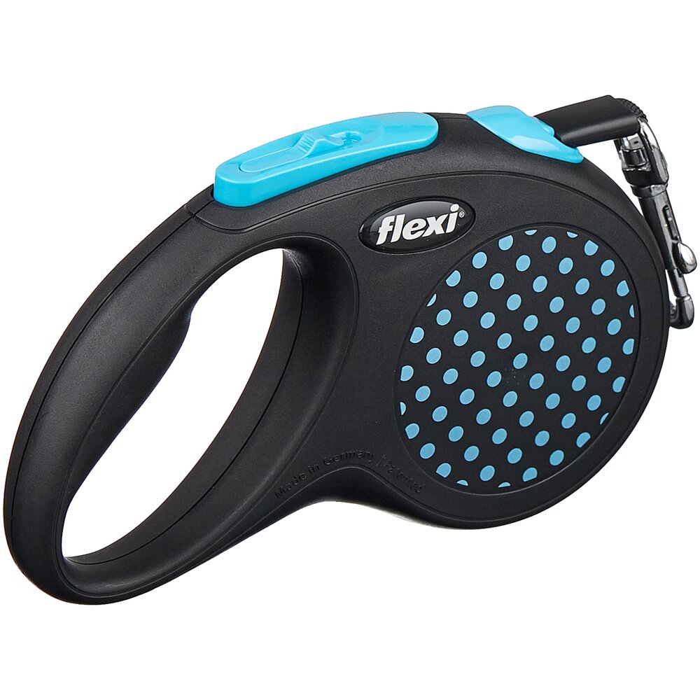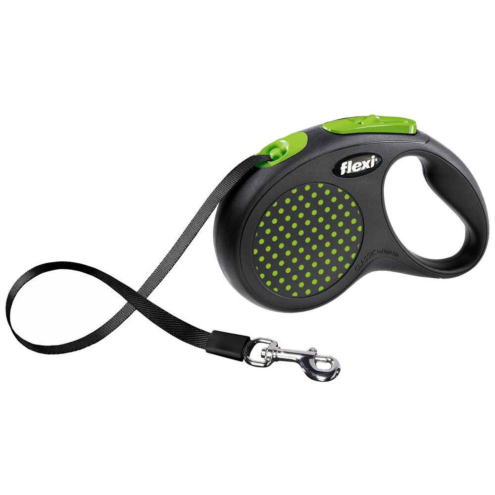 Ленточный поводок-рулетка Flexi предназначен для выгула собак весом до 15 кг.<br />Лента поводка автоматически сматывается, не позволяя поводку провисать в процессе использования и касаться грунта, благодаря чему повод всегда остаётся чистым и не перетирается.<p>Поводок оснащён обновлённой эргономичной кнопкой системы торможения и надёжным карабином. Запатентованная система сматывания и фиксации длины — дополнительное удобство, помогающее контролировать поведение животного.<br />Корпус рулетки выполнен из ударопрочного пластика.</p>