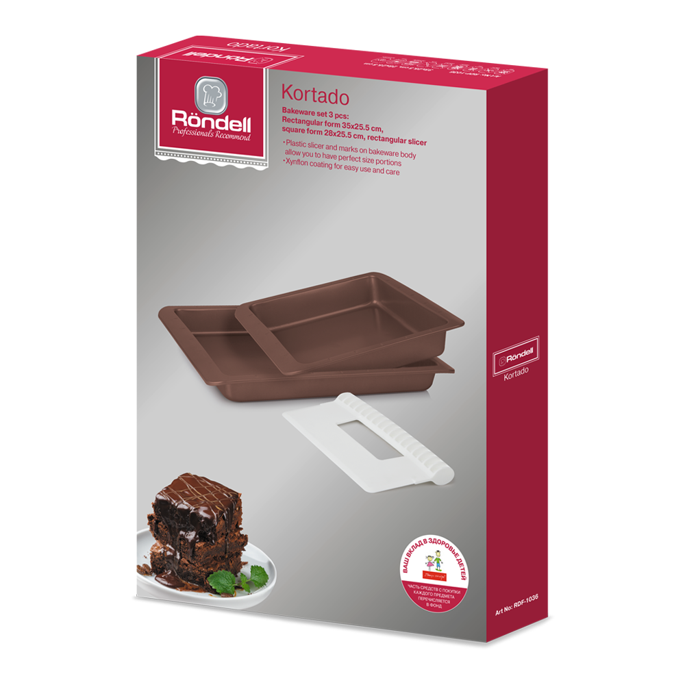 Коллекция Kortado представлена изделиями, необходимыми для приготовления выпечки. Изделия выполнены преимущественно в коричневом цвете и дополнены с необычным ассиметричным декором. Посуда изготовлена из углеродистой стали, с антипригарным напылением на внешней поверхности – для удобства эксплуатации и ухода. Для внутренней поверхности используется антипригарное покрытие Xynflon. В сочетании с рельефной поверхностью дна, это обеспечивает равномерное пропекание изделий и легкость их извлечения. Гейзерная кофеварка, вместимостью 450 мл, выполнена из алюминия, с покрытие от Whitfordа, оснащена эргономически удобной ручкой из нейлона и силикона. Технология уюта Кофе кортадо (эспрессо с горячим молоком), изобретенный в Испании, имеет не только потрясающий вкус, но и роскошный глубокий цвет. Именно этот оттенок вдохновил дизайнеров Rӧndell на разработку новой коллекции, которая получила соответствующее название. Результат превзошел ожидания! Посуда Kortado дарит своим счастливым владельцам не только комфорт в использовании, но и эстетическое наслаждение плавностью линий и тем самым сложным, шоколадно-бронзовым цветом. Предметы коллекции, выполненные в едином стиле, придадут кухне элегантность и законченный внешний вид. Обратите внимание, например, на сковороды из литого алюминия, которые идеально подходят для жарки мяса, рыбы или птицы. Никакого пригорания и легкий последующий уход! Необыкновенно удобны в эксплуатации и хранении также сковороды из штампованного алюминия, оборудованные съемными ручками. Последние имеют силиконовые прокладки, защищающие поверхность посуды от повреждения. Порадуют хозяйку и кастрюли разного объема, выполненные из нержавеющей стали. С покрытием или без? Решать только вам! Любителям выпечки, безусловно, понравятся всевозможные формы, обеспечивающие неизменно превосходный результат. И, наконец, нельзя не сказать о гейзерных кофеварках с двухслойным внутренним покрытием, благодаря которому каждое ваше утро будет добрым на протяжении многих лет!