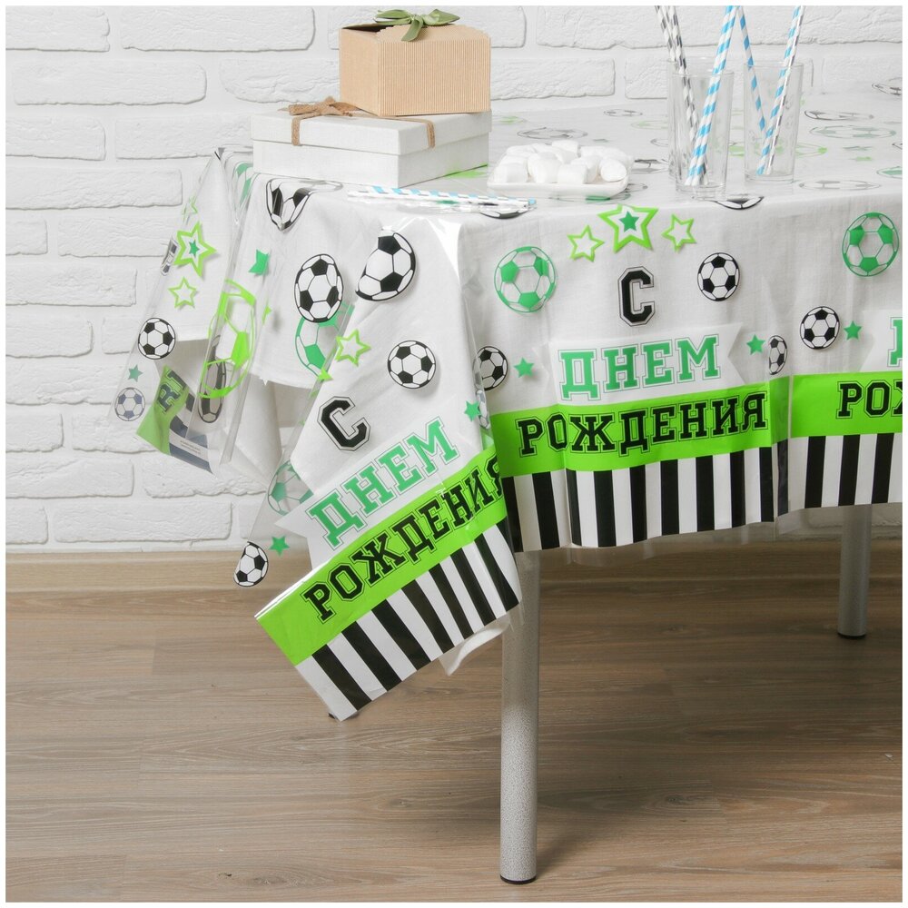 Скатерть "С днем рождения" футбол, 130х200 см 3642933