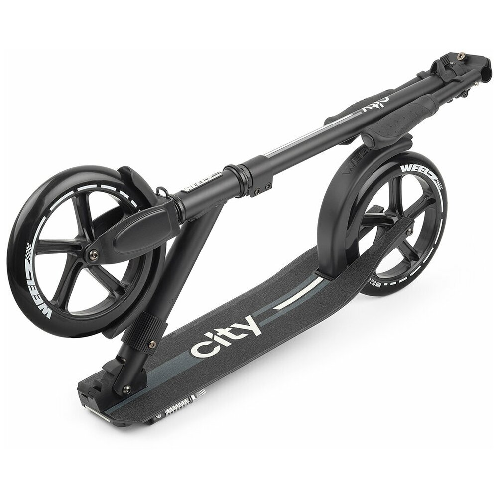 Weelz City - это новая модель 2021 года, на больших полиуретановых колесах, с лёгкой рамой. Данная модель подходит для подростков и взрослых ростом от 130 см и весом не более 120 кг. Weelz City будет удобен при городской езде по асфальту. За счёт двух одинаковых колёс 230мм, достигается большая скорость и хороший накат. Так-же приятно удивит вас лёгкость этого самоката. Правильная геометрия рамы, обеспечивает долговечнось при эксплуатации с повышенными нагрузками. Современный и простой механизм складывания, сумка чехол в комплекте.