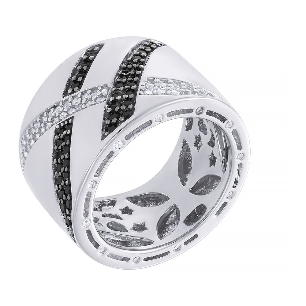 ELEMENT47 Широкое ювелирное кольцо из серебра 925 пробы с кубическим цирконием ARS101001W_KO_001_WG, размер 17.5