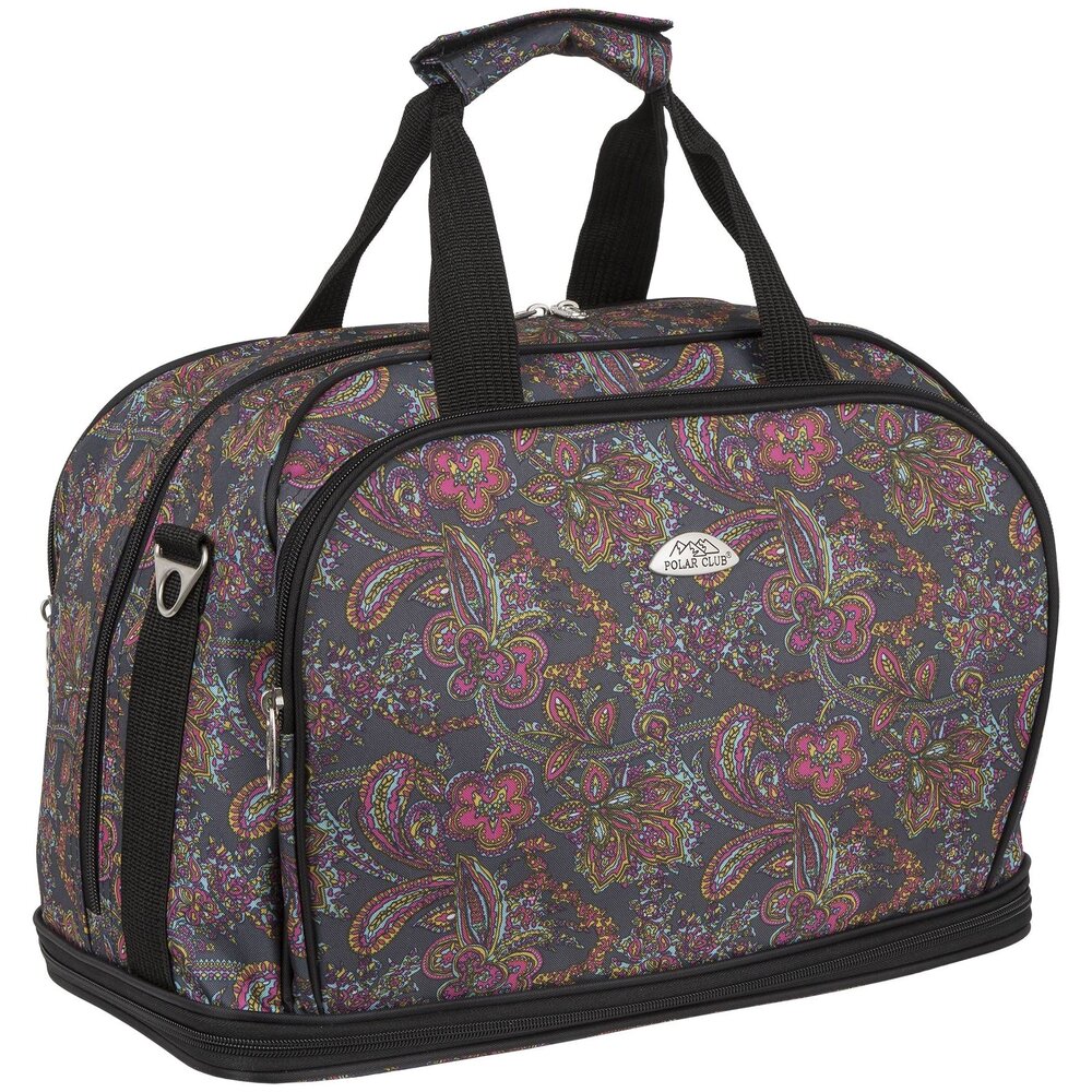 Дорожная сумка фирмы Polar. Основное отделение застегивается на молнию. Внутри два больших кармана на молнии. Снаружи два вместительных кармана на молнии. Высоту сумки можно увеличить на 14 см. при помощи встроенной молнии. На дне резиновые ножки. Высота ручек 15 см. В комплекте плечевой ремень.