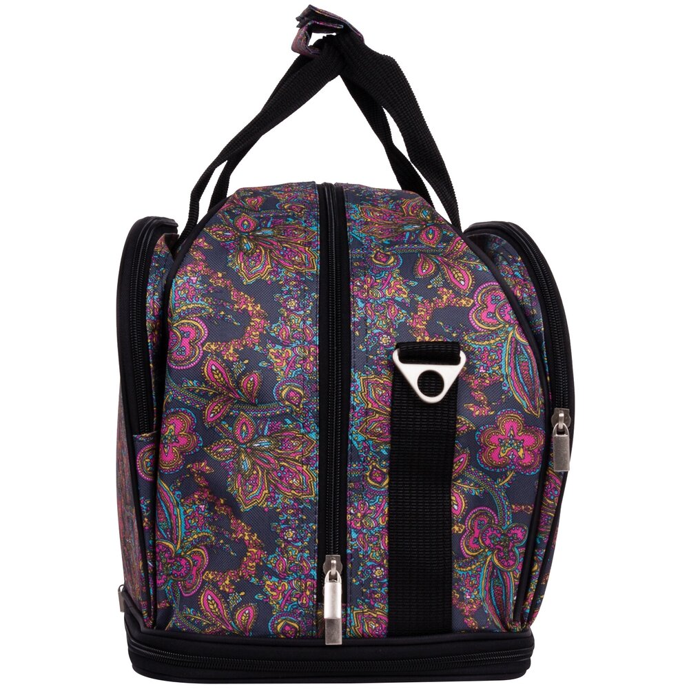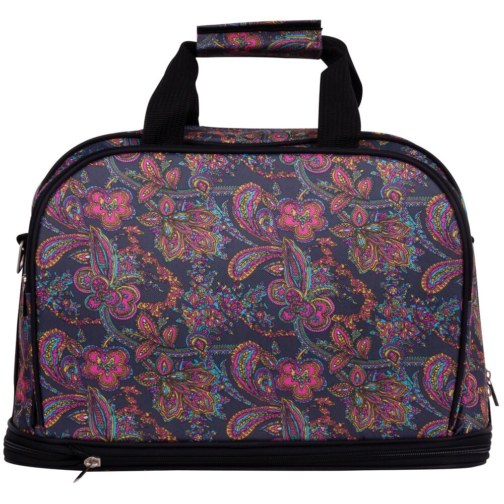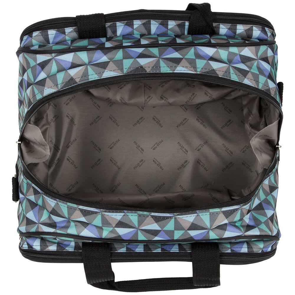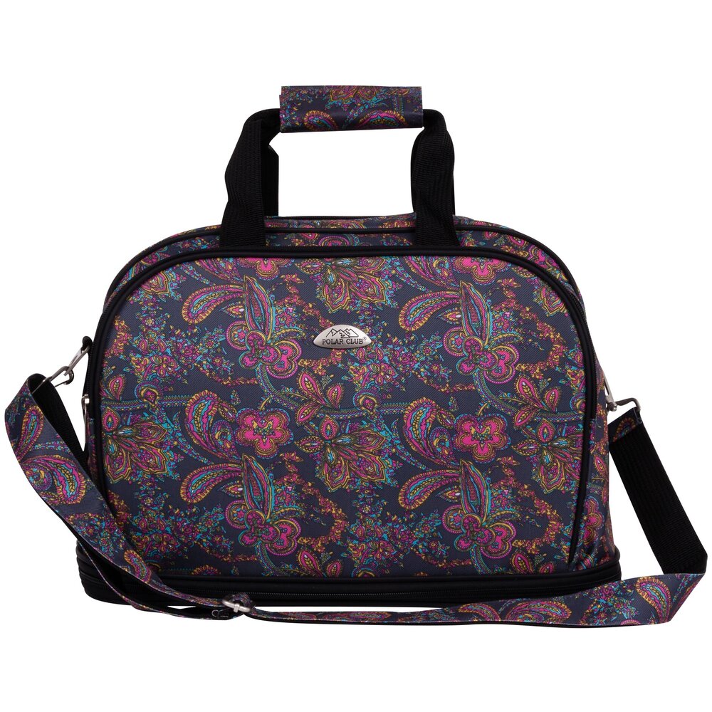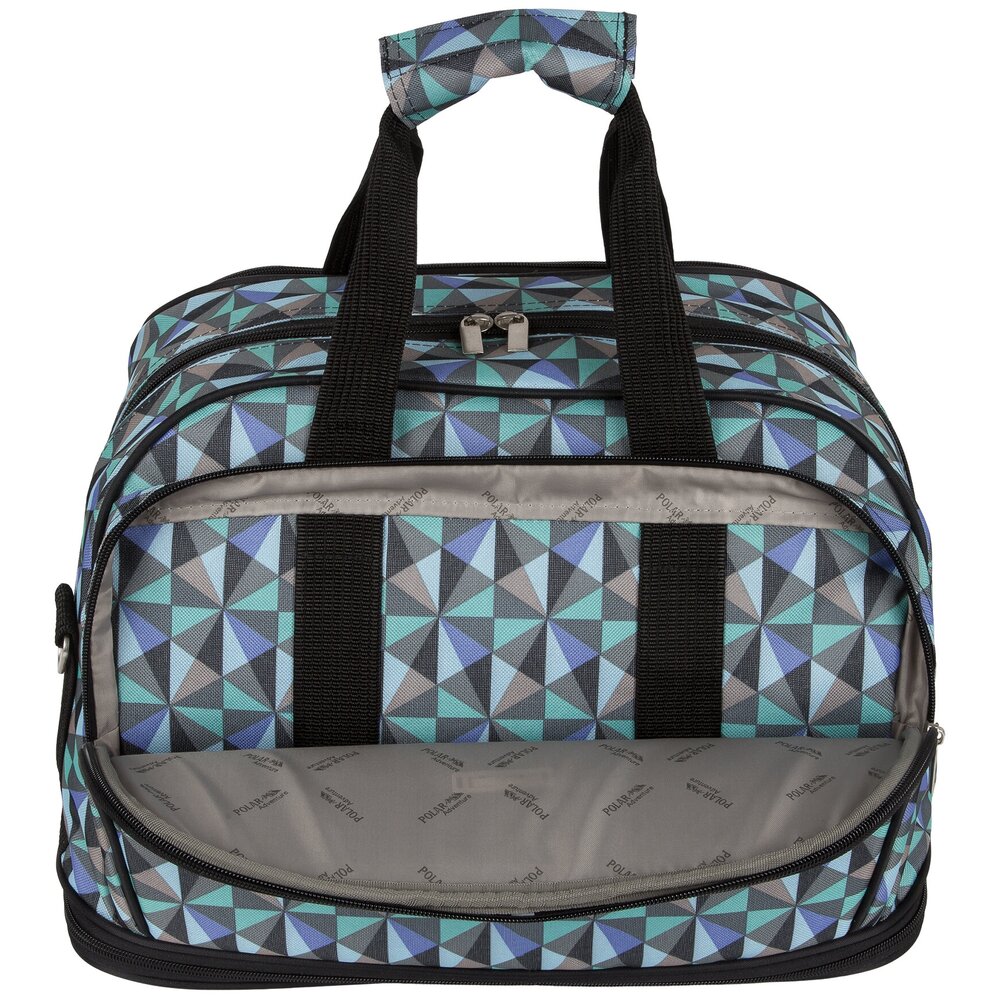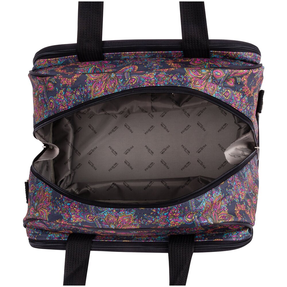 Дорожная сумка фирмы Polar. Основное отделение застегивается на молнию. Внутри два больших кармана на молнии. Снаружи два вместительных кармана на молнии. Высоту сумки можно увеличить на 14 см. при помощи встроенной молнии. На дне резиновые ножки. Высота ручек 15 см. В комплекте плечевой ремень.