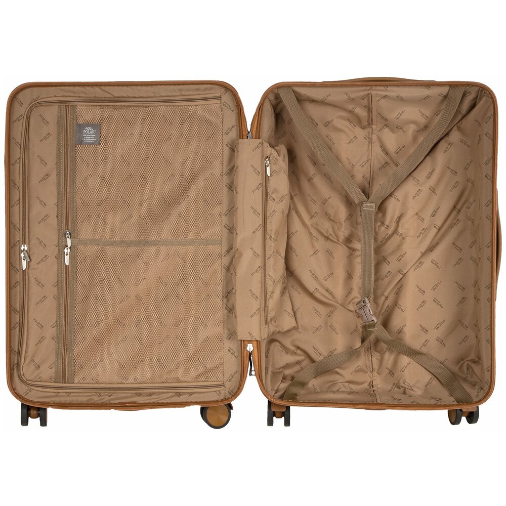 Чемодан на четырех прорезиненных колесиках. Чемодан выполнен из нового легкого материал PC (Поликарбонат). В отличие от ABS-пластика чемоданы из PC можно эксплуатировать при очень низких температурах. PC (Поликарбонат) обладает высокой прочностью, эластичностью и высокой ударостойкостью. Особенностью чемоданов из PC (Поликарбонат) является малый вес. Внутри подкладка из полиэстра. Одна секция чемодана с креплением резинками для одежды. Вторая секция застегивается на молнию для удобства упаковки вещей. Есть кодовый замок TSA.