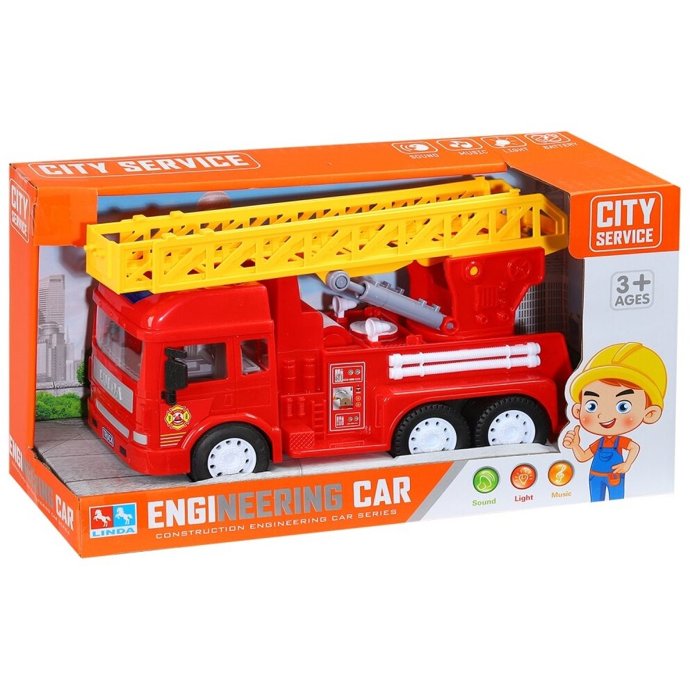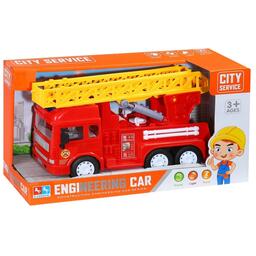 Инерционная машинка представляет собой модель пожарной машины с выдвижной лестницей Наличие световых и звуковых эффектов сделают игровой процесс еще более увлекательным. Сюжетно-ролевые игры с пожарной машиной развивают фантазию и воображение. Игрушка выполнена из качественных, безопасных для детского здоровья материалов. Батарейки: 2*AAA/ не входят в комплект Рекомендуемый возраст: 3+ Размер упаковки: 35,5*12,5*19,9