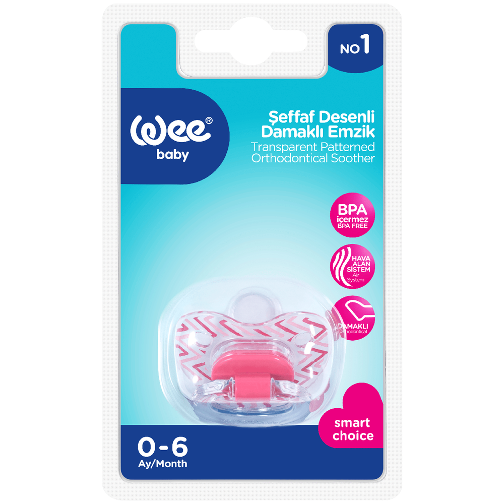 WeeBaby Прозрачная ортодонт. Соска-Пустышка с Рисунком, с рождения, розовая