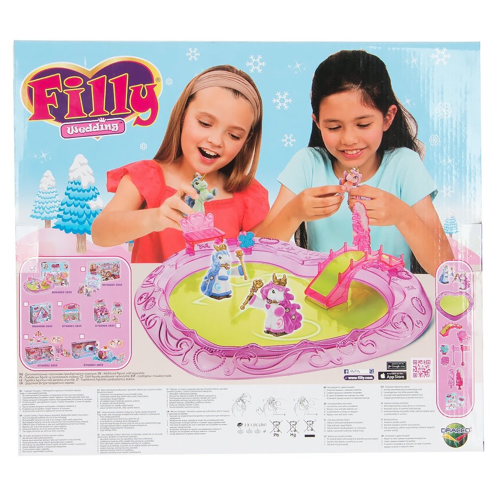 - Дополнительная информация в комплекте: 2 свадебные лошадки, каток в форме сердца, 2 карточки, брошюра, набор аксессуаров; набор работает от 3 батареек AG13/LR44