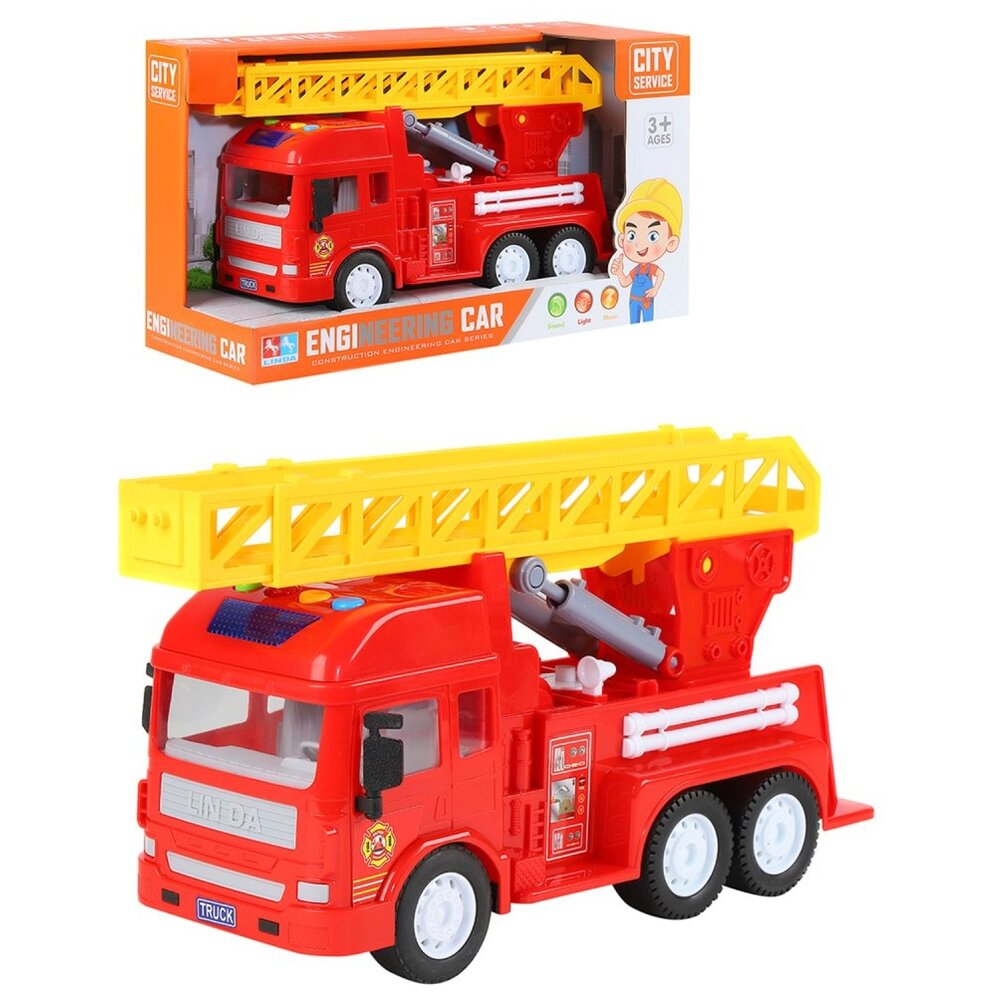 Инерционная машинка представляет собой модель пожарной машины с выдвижной лестницей Наличие световых и звуковых эффектов сделают игровой процесс еще более увлекательным. Сюжетно-ролевые игры с пожарной машиной развивают фантазию и воображение. Игрушка выполнена из качественных, безопасных для детского здоровья материалов. Батарейки: 2*AAA/ не входят в комплект Рекомендуемый возраст: 3+ Размер упаковки: 35,5*12,5*19,9