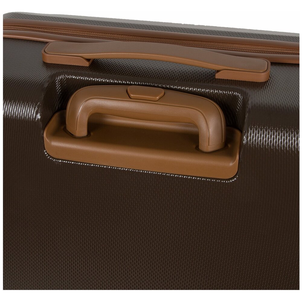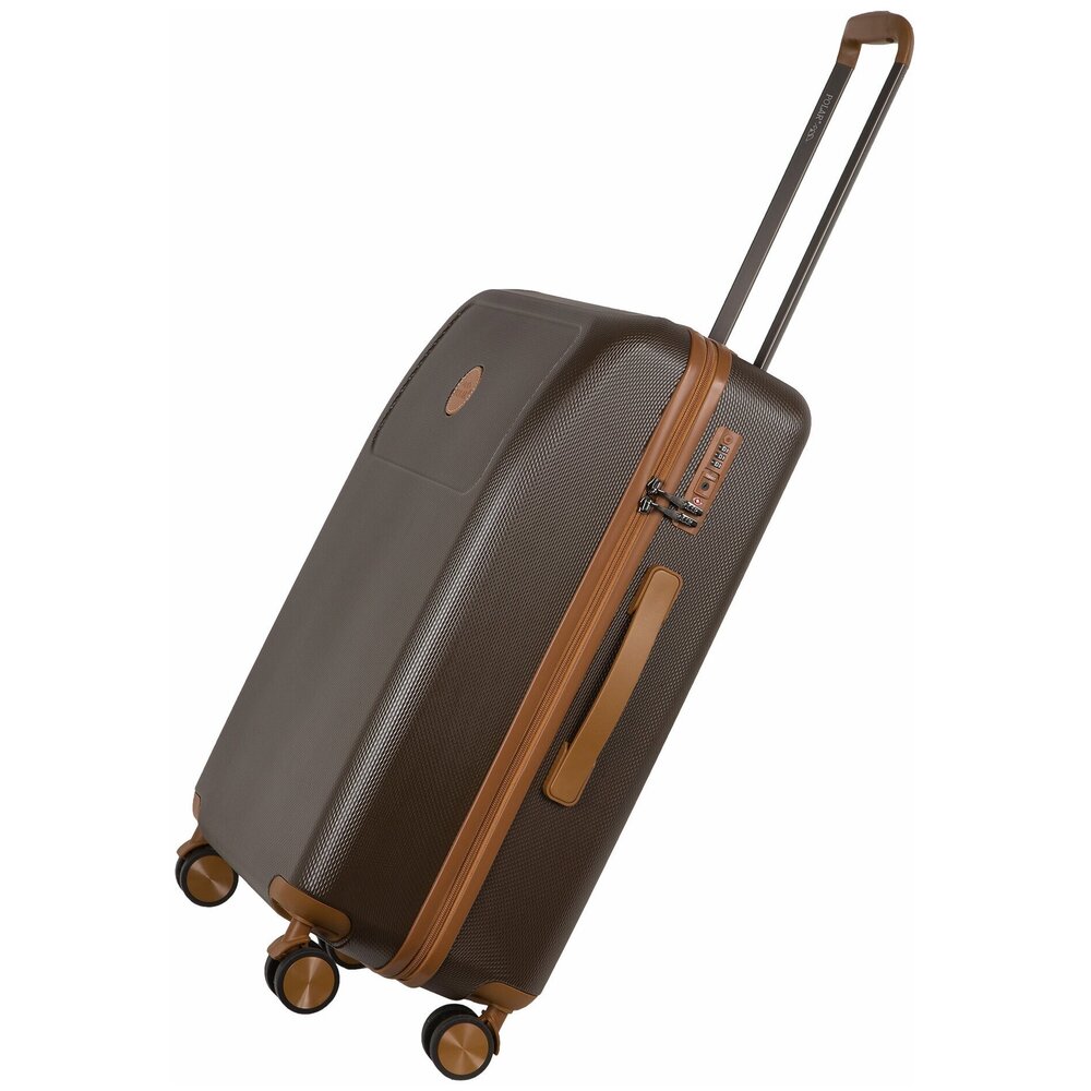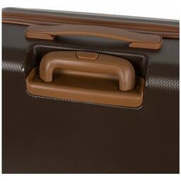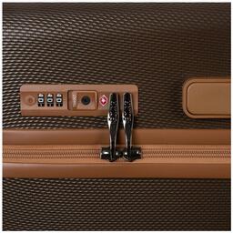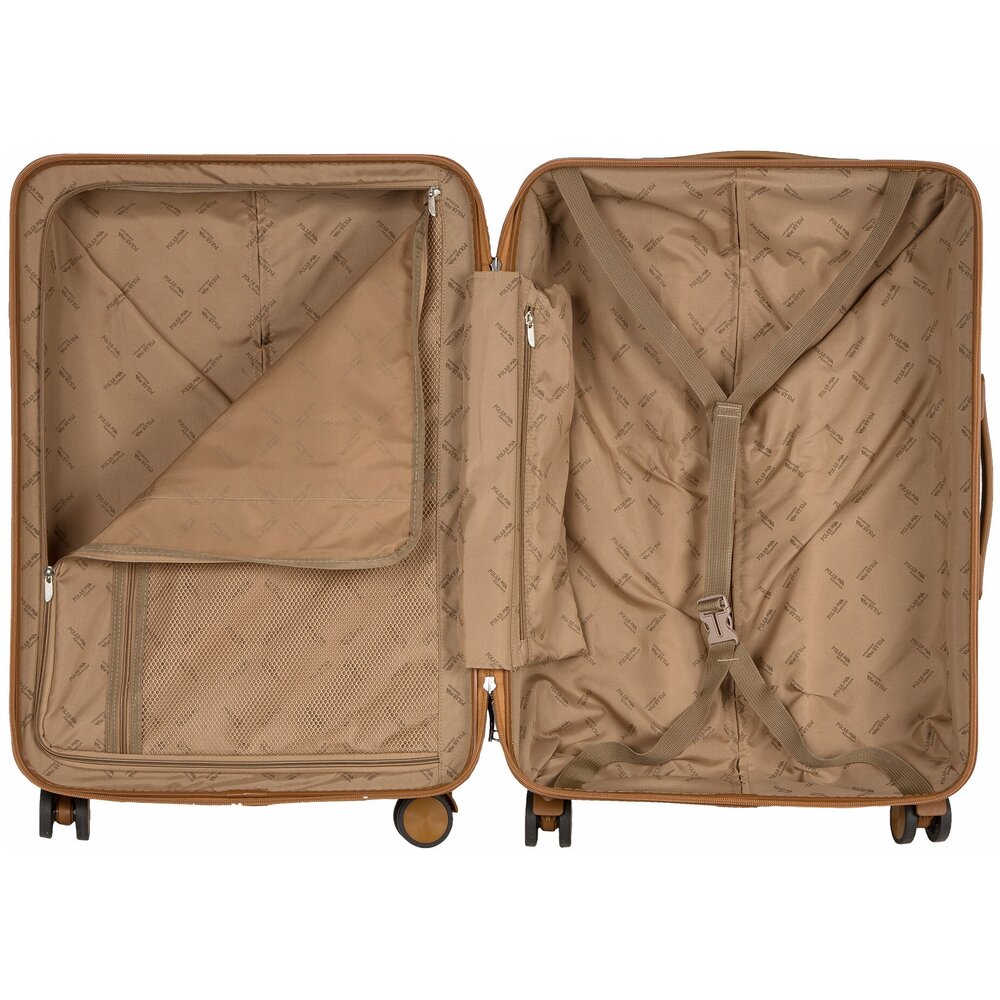 Чемодан на четырех прорезиненных колесиках. Чемодан выполнен из нового легкого материал PC (Поликарбонат). В отличие от ABS-пластика чемоданы из PC можно эксплуатировать при очень низких температурах. PC (Поликарбонат) обладает высокой прочностью, эластичностью и высокой ударостойкостью. Особенностью чемоданов из PC (Поликарбонат) является малый вес. Внутри подкладка из полиэстра. Одна секция чемодана с креплением резинками для одежды. Вторая секция застегивается на молнию для удобства упаковки вещей. Есть кодовый замок TSA.