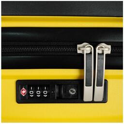 Чемодан малый фирмы POLAR, размер М, выполнен из ABS-пластика. Основное отделение разделено на две части. Одно имеет фиксирующие ремни, второе на молнии. Выдвигающаяся ручка расположена внутри корпуса чемодана, что способствует большей прочности и защите от ударов при разгрузке/погрузке чемодана. Выдвигающаяся ручка фиксируется в двух положениях. Есть кодовый замок. Надежные 4 колеса.