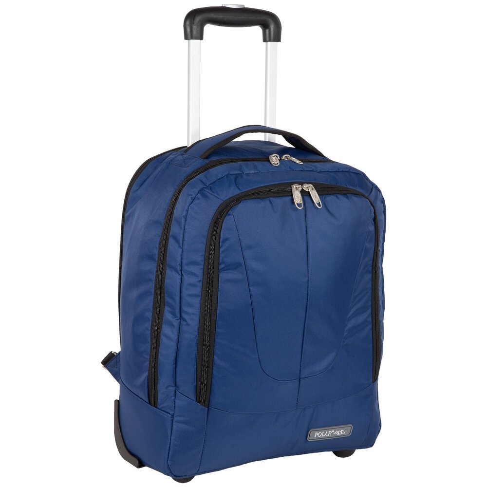 Чемодан-рюкзак на колесах с выдвижной тележкой фирмы POLAR. Подходит как Ручная кладь. Чемодан не имеет каркаса, можно сложить при хранении. На задней стенке чемодана спрятаны под молнию рюкзачные лямки которые можно достать расстегнув молнию. Внутри: большое отделение с фиксаторами и зажимами для ваших вещей и отделение для ноутбука. Передний карман на молнии. Ручка-тележка выдвигается на 50 см. В собранном состоянии ее можно спрятать под молнию.