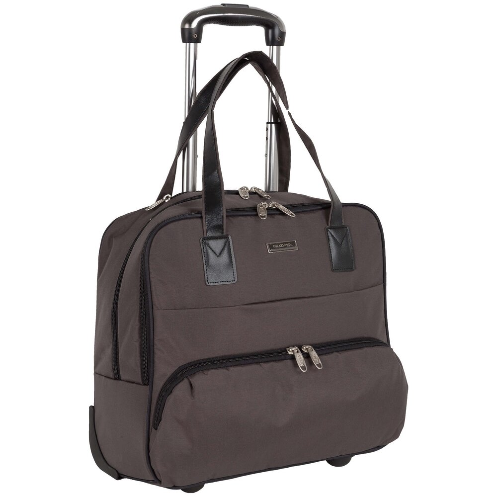 Дорожная сумка от компании "Polar" на двух колёсах выполнен из прочного полиэстера и прекрасно подходит для тех путешественников, которые предпочитают недолгие деловые командировки или поездки ". Чемодан состоит из двух отделений, которые закрываются на пластиковую молнию. В переднем отделении имеется открытый уплотнённый карман, спереди кейса-пилота располагаются два кармана на молнии, предназначенные для документов и мелких вещей, сзади есть широкая лента для фиксации сумки на ручке чемодана. У мини-чемодана есть две ручки для переноски, высота которых составляет 24,5 см и выдвижная металлическая ручка, высота которой составляет 42 см.
