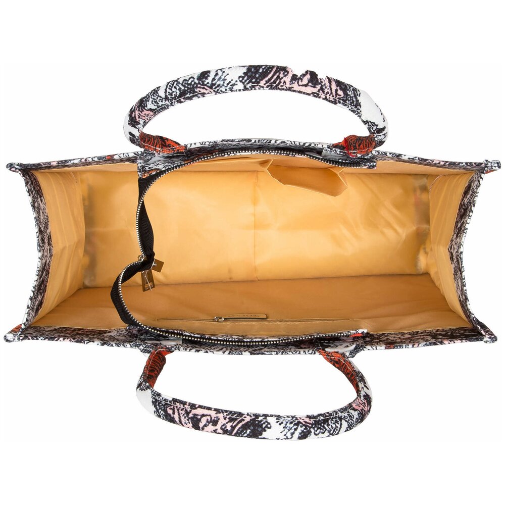 Сумка-шоппер Pola выполнена из плотного текстиля с вышитым узором . Основное отделение закрывается на металлическую молнию. Внутри одно отделение, маленький карман на молнии для мелочей и два открытых кармашка. Длина ручек 18 см. Модель можно носить в руке или на плече. В этой модели найдется место для всего самого необходимого в повседневной жизни.