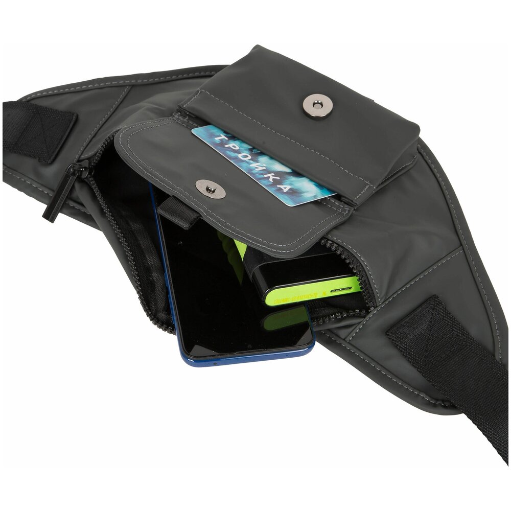 Поясная молодёжная сумка POLAR выполнена из водоотталкивающего полиэстера прекрасно подходит для пеших прогулок. Сумка состоит из двух отделений, которые закрываются на пластиковую молнию. Спереди небольшой накладной карман на магнитной кнопке. Сзади карман на пластиковой молнии Модель очень удобная и комфортная. Максимальная длина ремня 118 см.
