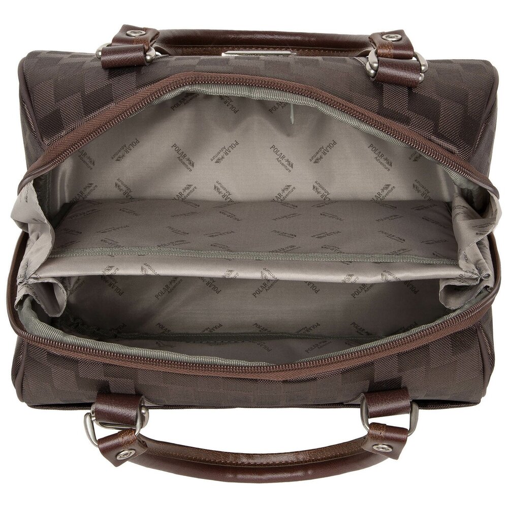 Небольшая и очень удобная сумка фирмы POLAR может использоваться как вместительная повседневная модель, или как сумка для краткосрочных путешествий. Идеально подходит под требования для ручной клади авиакомпании Победа. Сумка выполнена из высокопрочного материала на основе пены EVA. Сумка держит форму, ткань устойчива к загрязнениям и при необходимости легко чистится. Сумку очень удобно носить в руке, ручки выполнены из мягкой экокожи. Высота ручек 18 см. При желании сумку можно носить на плече или кроссбоди, в комплекте есть съемный, регулируемый по длине ремень, длина до 115 см. Внутри одно просторное отделение, разделенное середняком с открытым карманом и дополнительным карманом на молнии для мелочей. Сумка легкая, ее вес 790 грамм, очень качественно сшита, все швы ровные, на плотной подкладке. Сумка выдерживает вес до 10 кг. На дне сумки прорезиненные ножки, чтобы дно оставалось чистым. На задней стенке сумки предусмотрено крепление на ручку чемодана, но если вы застегнете молнию, то получите дополнительный карман.
