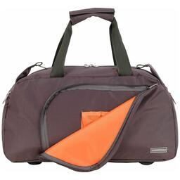 Сумка для фитнеса фирмы Polar. Одно основное отделение, закрывается на молнию, внутри карман на молнии. Спереди и сзади сумки карманы на молнии. По бокам небольшие карманы на молнии. Съемный плечевой ремень. На дне пластиковые ножки. Высота ручек 20 см.