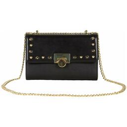 Стильная женская сумка фирмы Pola выполнена из экокожи. Модель декорирована металлическими заклёпками. Великолепно подходит стильным женщинам со вкусом. Сумка закрывается на застежку-крючок. Внутри карман на молнии и одно небольшое отделение. Максимальная высота ремня 53 см. Цвет фурнитуры-золото.
