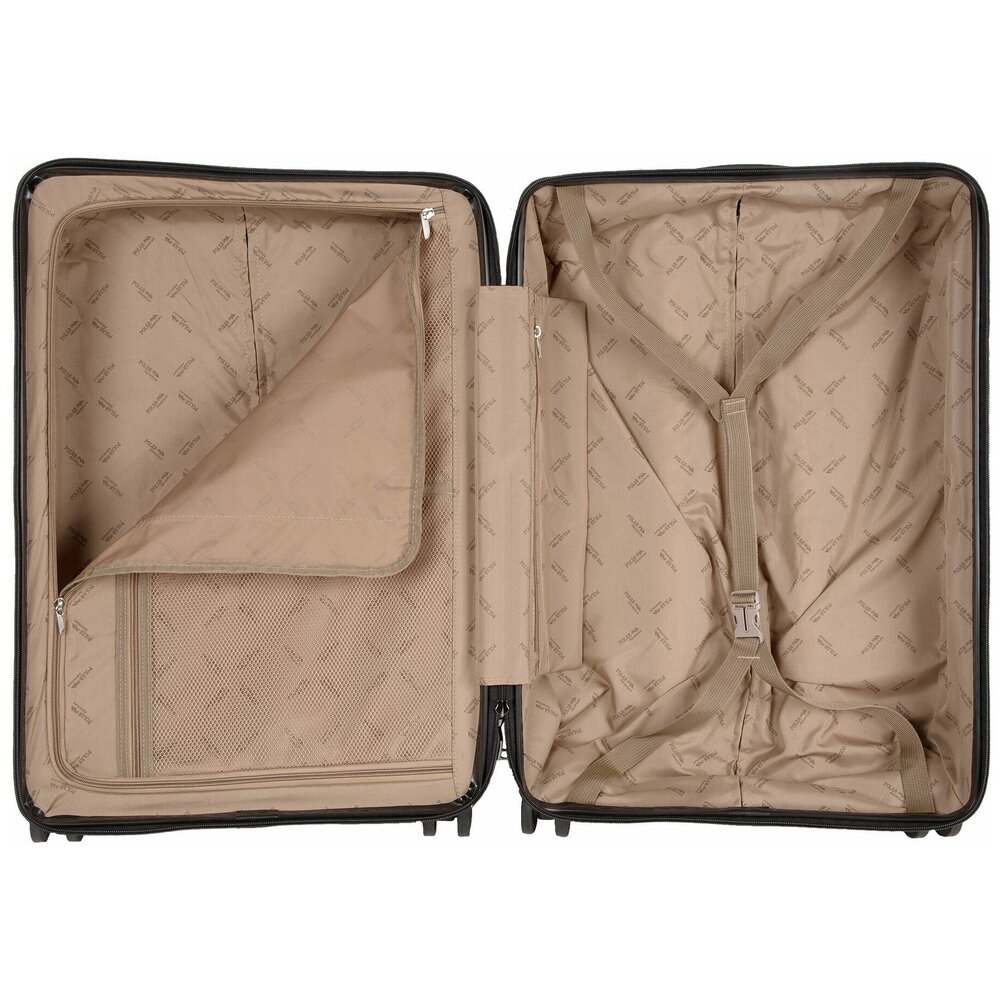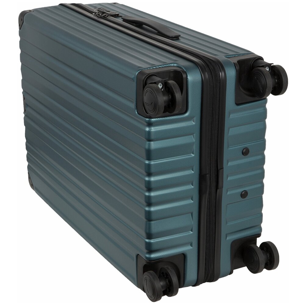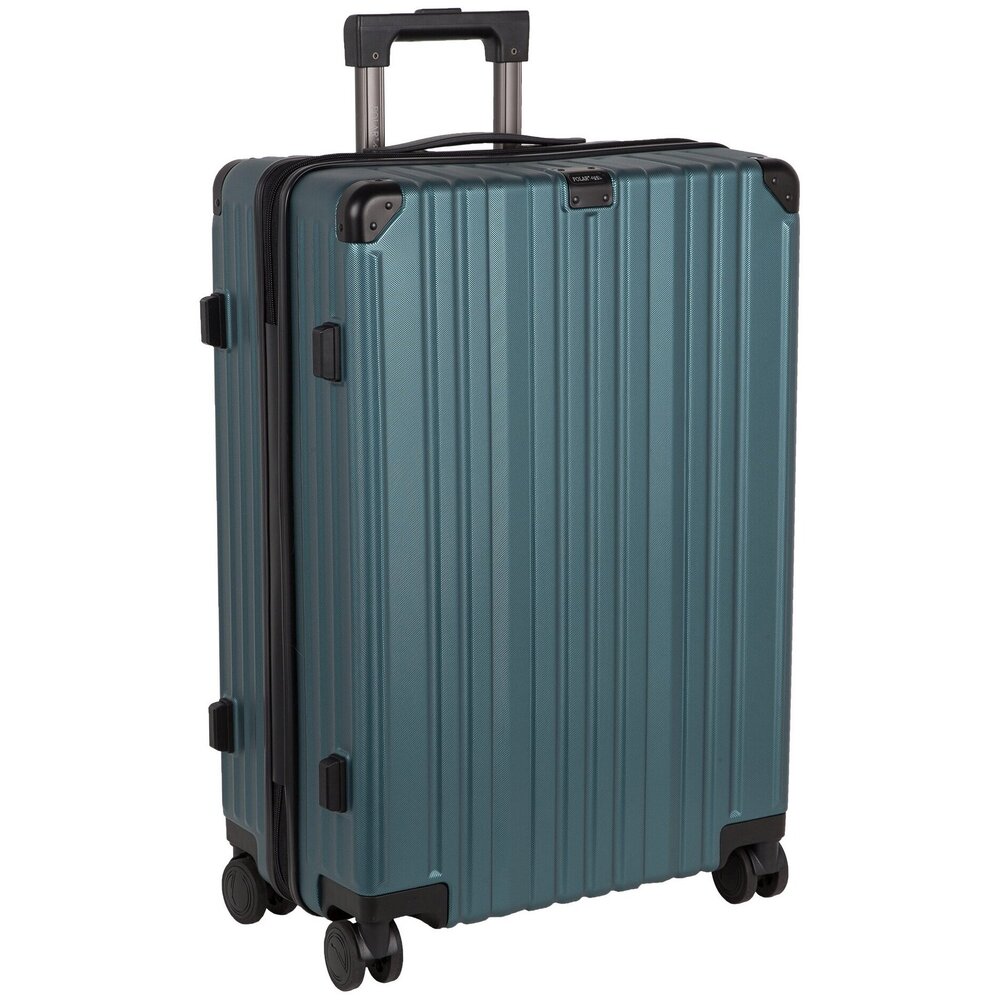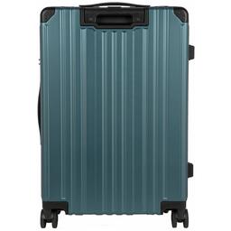 Чемодан на четырех прорезиненных колесиках. Чемодан выполнен из нового легкого материал PC (Поликарбонат). В отличие от ABS-пластика чемоданы из PC можно эксплуатировать при очень низких температурах. PC (Поликарбонат) обладает высокой прочностью, эластичностью и высокой ударостойкостью. Особенностью чемоданов из PC (Поликарбонат) является малый вес. Внутри подкладка из полиэстра. Одна секция чемодана с креплением резинками для одежды. Вторая секция застегивается на молнию для удобства упаковки вещей. Есть кодовый замок TSA.