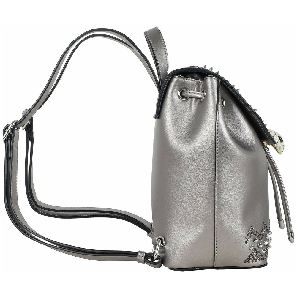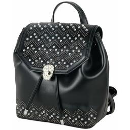 Стильный женский рюкзак с шипами фирмы Pola выполнен из экокожи. Основное отделение завязывается шнурком, а сверху закрывается клапаном на магнитной кнопке. Внутри рюкзака два кармана на молнии и один открытый кармашек. максимальная длина лямок 90 см.
