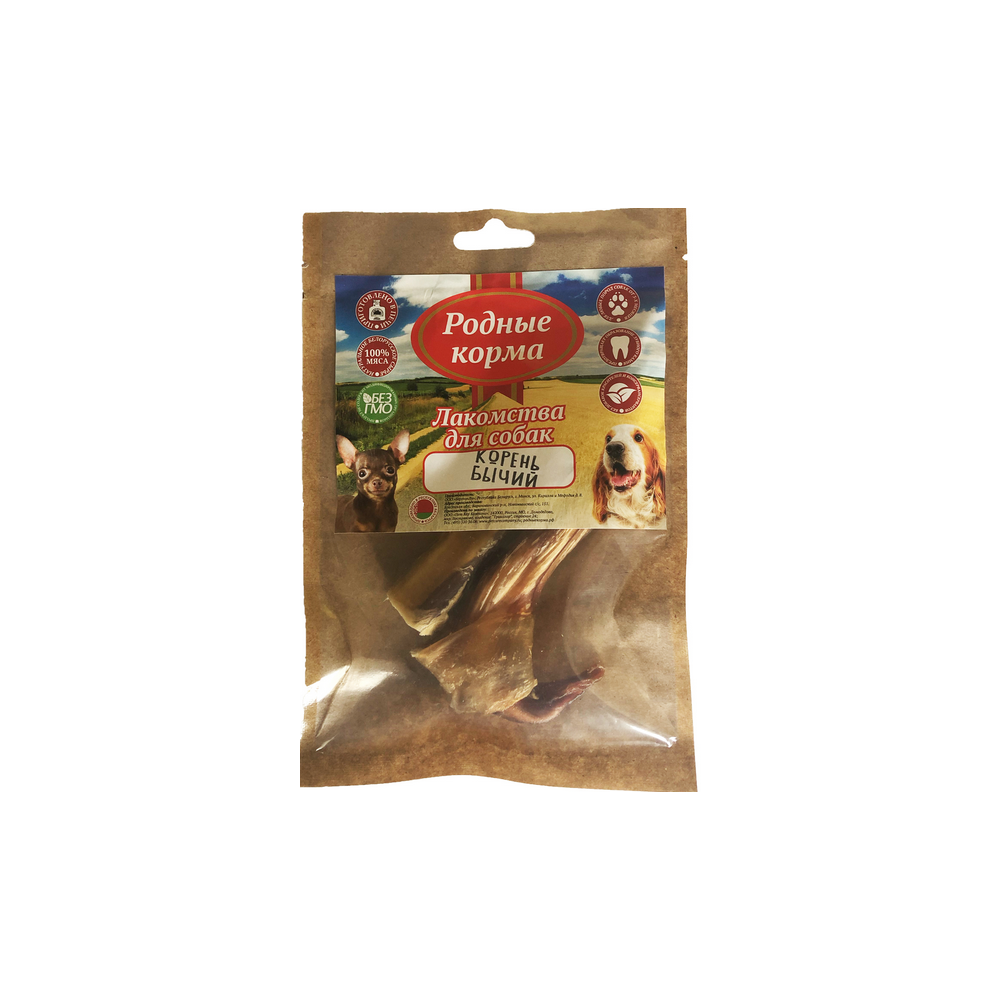 Лакомство для мелких пород собак "Родные корма", цельный бычий корень (сушеный в дровяной печи), 2 штуки