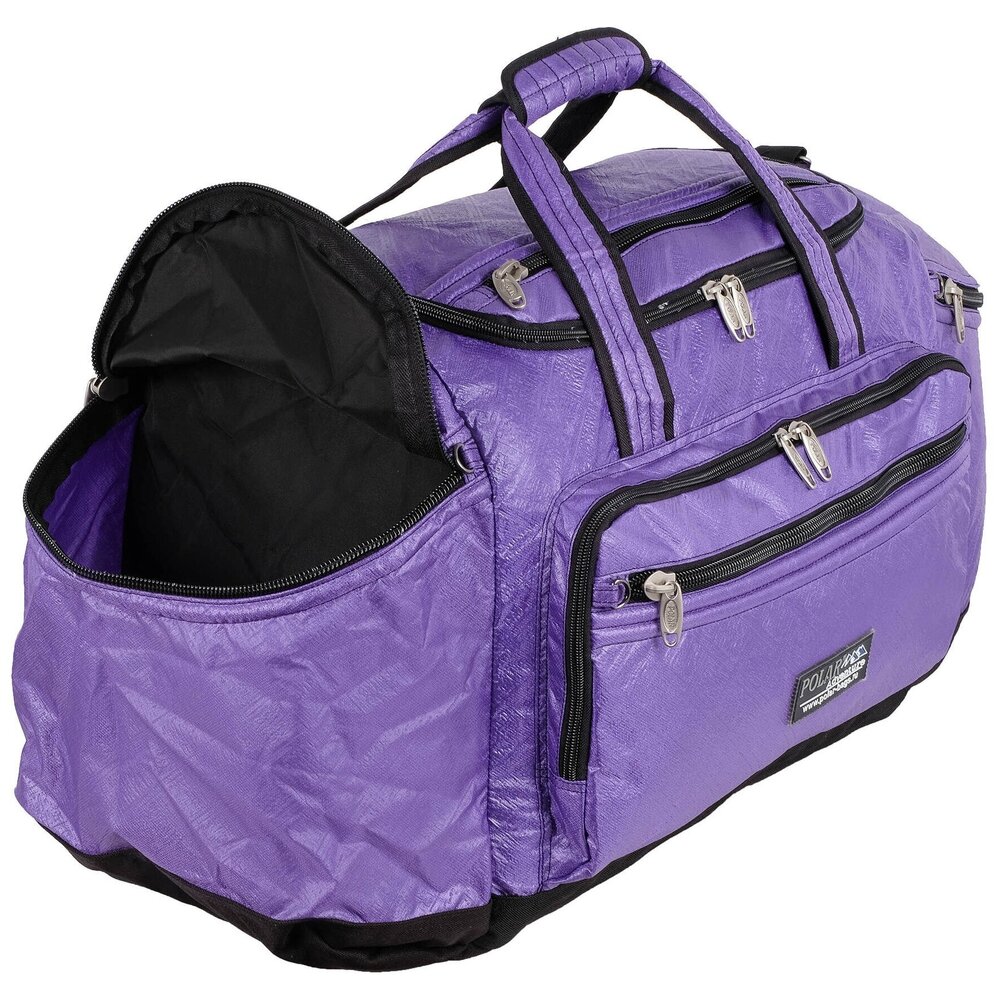 Дизайн дорожной сумки выполнен в духе современных цветовых тенденций молодежной моды. Сумка состоит из одного большого вместительного отделения, которое закрывается на двухстороннюю застежку-молнию по прямой. С фронтальной стороны дополнительно оснащена специальными карманами для документов формата А4. Несущие лямки широко фиксируются на липучке и при ношении не врезаются в руку. Съемный и удобный наплечный ремень с регулируемой длиной имеет мягкую подкладку для плеча. Материал полиэстер.
