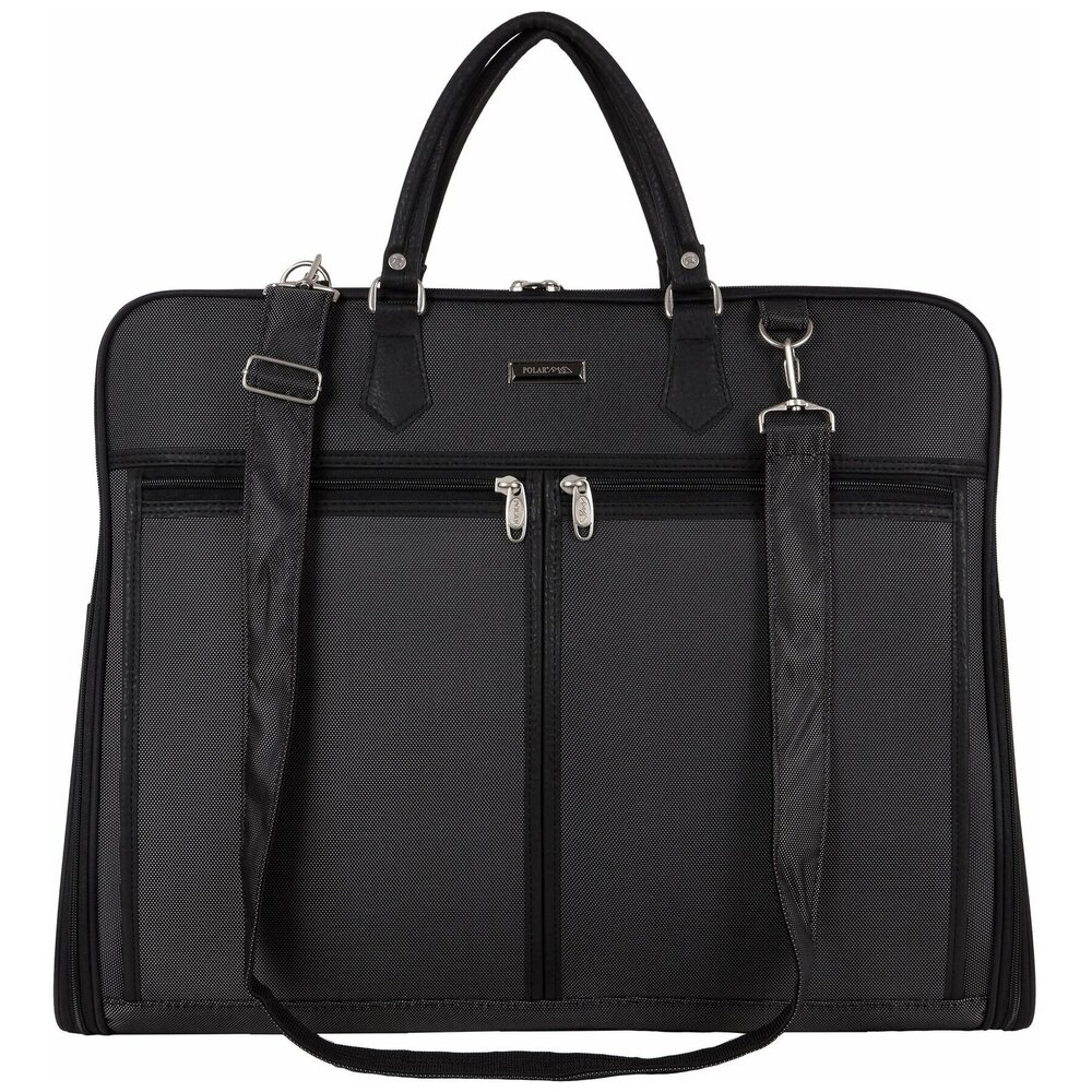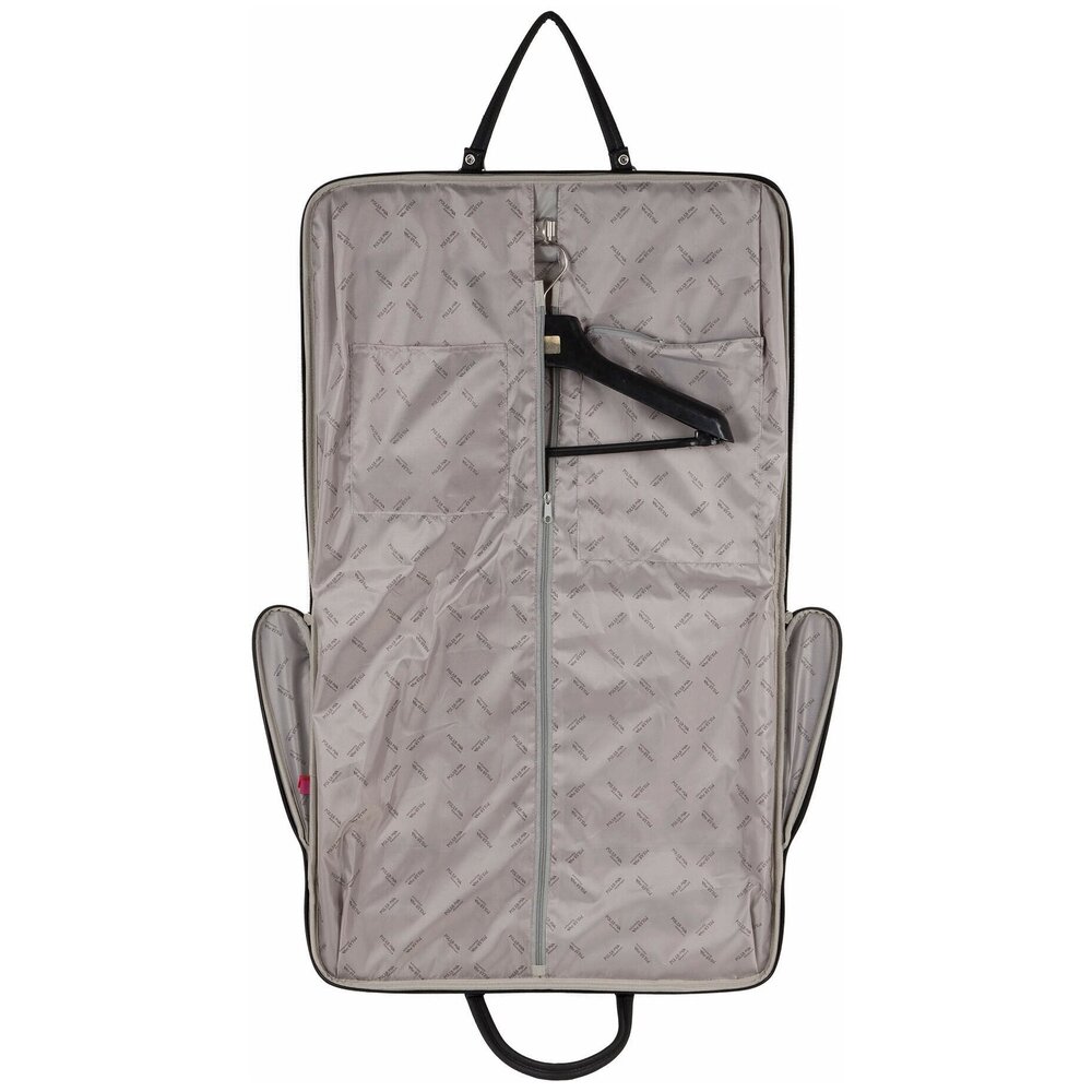 Тонкий портплед на молнии. Удобен для перевозки деловых костюмов в командировке. Это гарантия того, что ваш костюм прибудет в место назначения не только в целости и сохранности, но и сохранит свой презентабельный вид - не помнется и не испачкается. Основной отдел в форме чехла с крючком для вешалки. Дополнительно внутри два кармана. Снаружи на передней части расположены два больших кармана на молнии, сзади один большой карман на молнии. Портплед снабжен съемным плечевым ремнем. Вешалка в комплект не входит.