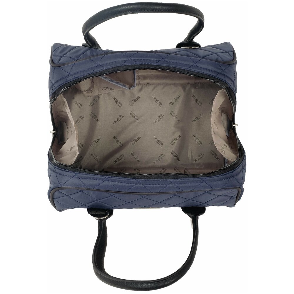 Очень легкая и удобная сумка фирмы POLAR может использоваться как вместительная повседневная модель, или как сумка для краткосрочных путешествий. Идеально подходит под требования для ручной клади авиакомпании Победа. Сумка выполнена из стеганного текстиля красивых расцветок и имеет водоотталкивающую пропитку. Модель отлично держит форму, ткань устойчива к загрязнениям и при необходимости легко чистится. Сумку очень удобно носить в руке, ручки выполнены из мягкой экокожи. При желании сумку можно носить на плече или кроссбоди, в комплекте есть съемный, регулируемый по длине ремень. Внутри одно просторное отделение с дополнительным карманом на молнии и двумя открытыми карманами для мелочей. Сумка легкая, ее вес всего 500 грамм, очень качественно сшита, все швы ровные, на плотной подкладке. Сумка выдерживает вес до 10 кг. На дне сумки прорезиненные ножки, чтобы дно оставалось чистым.