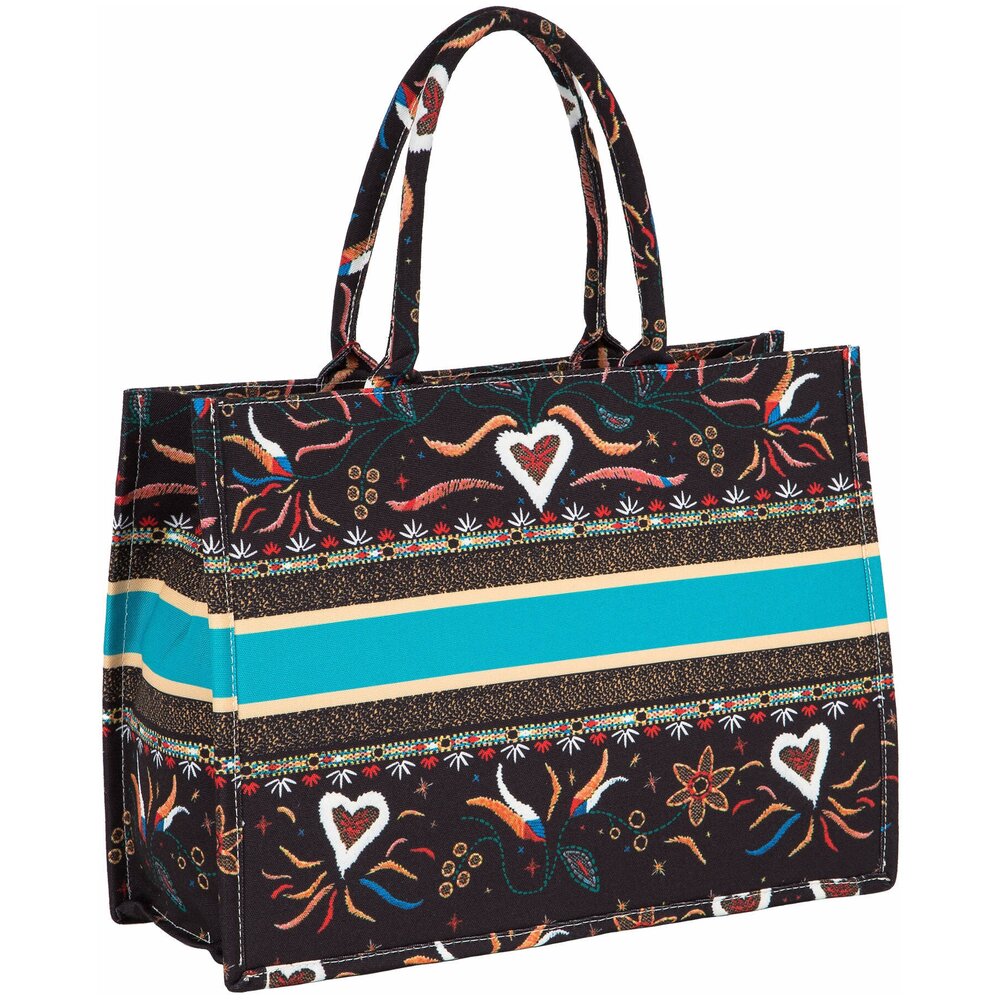 Сумка-шоппер Pola выполнена из плотного текстиля с вышитым узором . Основное отделение закрывается на металлическую молнию. Внутри одно отделение, маленький карман на молнии для мелочей и два открытых кармашка. Длина ручек 18 см. Модель можно носить в руке или на плече. В этой модели найдется место для всего самого необходимого в повседневной жизни.