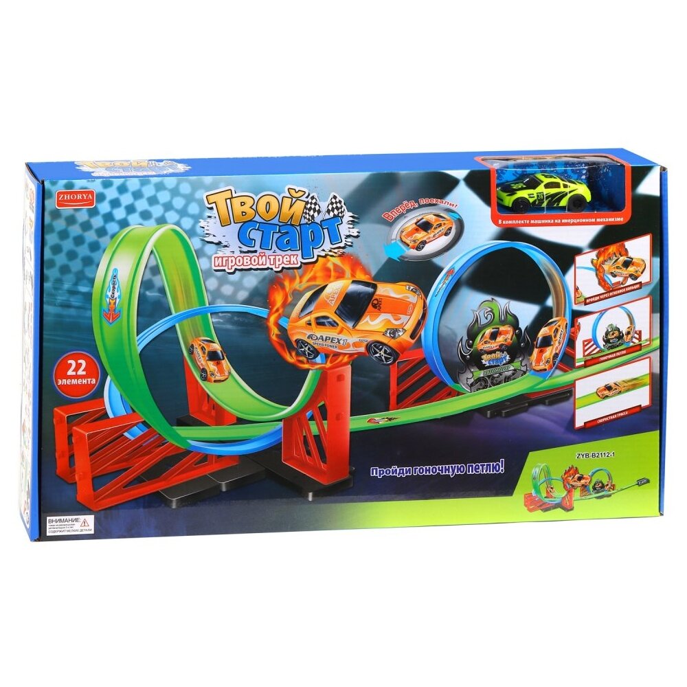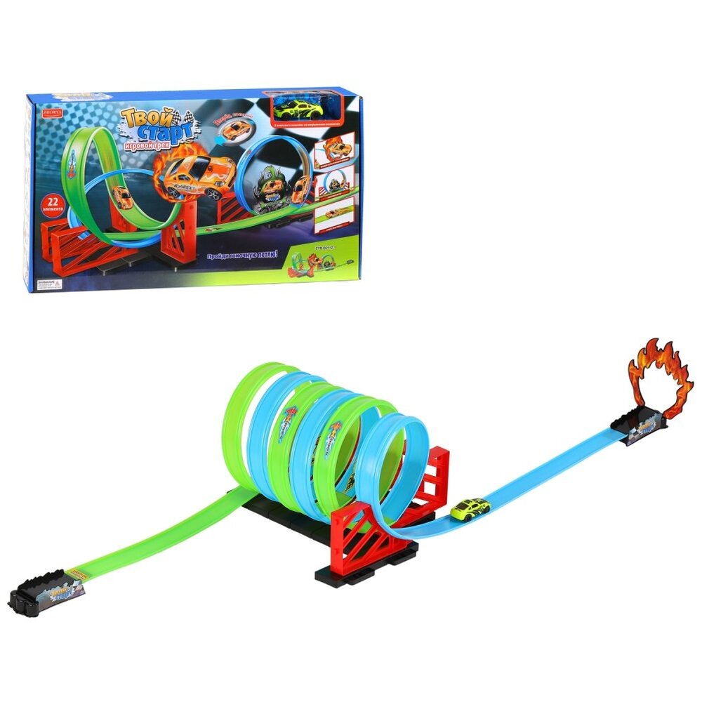 Детский игровой трек "Твой старт", инерционная машинка, трасса с гоночными петлями, в комплекте 22 элемента, в/к 48*26,5*5,5 см