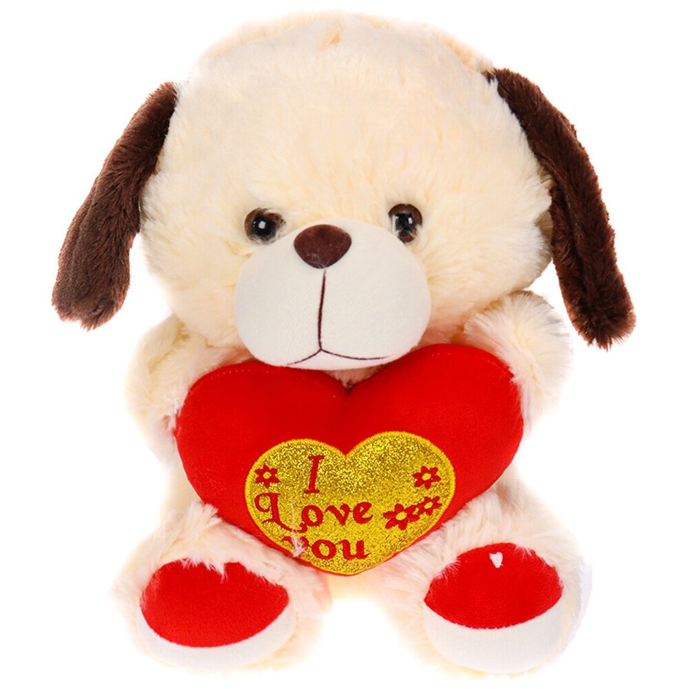 Мягкая игрушка "Песик с сердцем бежевый"