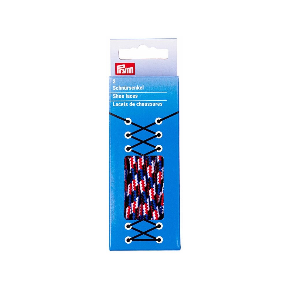 Шнурки для обуви, для занятий на улице, диаметр 5мм, длина 150см, 100% полиэстер, Prym, 974943 Шнурки для обуви, для занятий на улице, диаметр 5мм, длина 150см, 100% полиэстер, белый/красный/синий, 2шт в упаковке