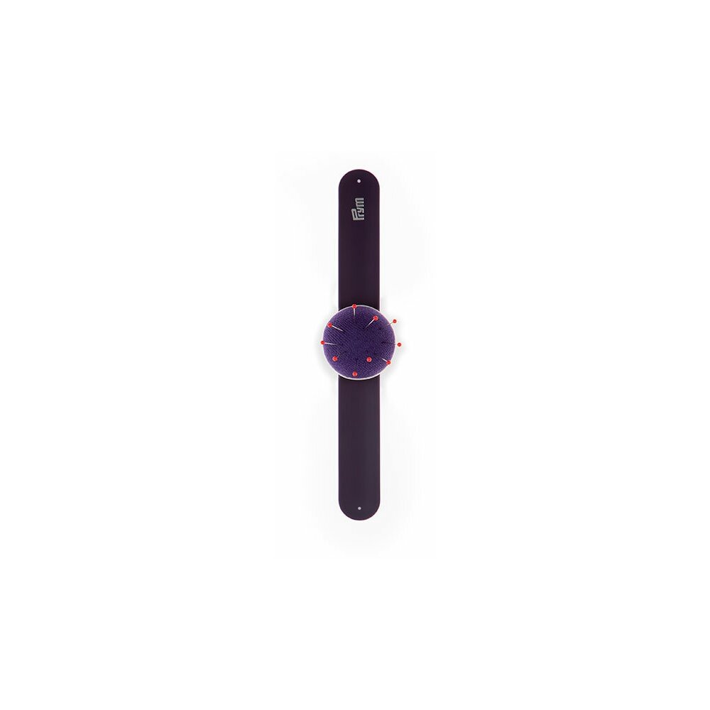 Игольница на руку с силиконовым браслетом (браслет 240*29мм, подушка диаметр 50мм), Prym, 610275 Игольница на руку с силиконовым браслетом (браслет 240*29мм, подушка диаметр 50мм), силикон/полиэстер, белый/фиолетовый