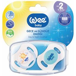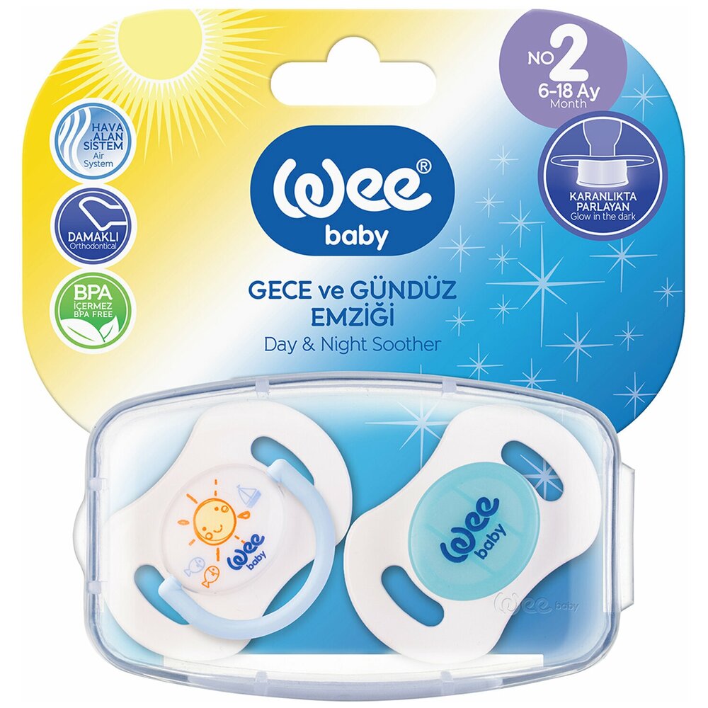 WeeBaby набор ортодонт. Сосок-Пустышек "День-Ночь", 2 шт. в контейнере, от 6 мес. , Синий
