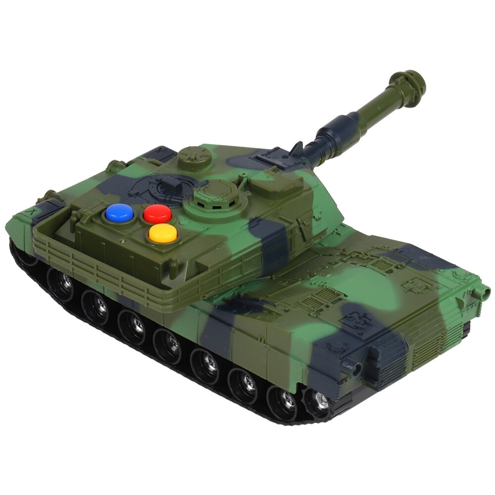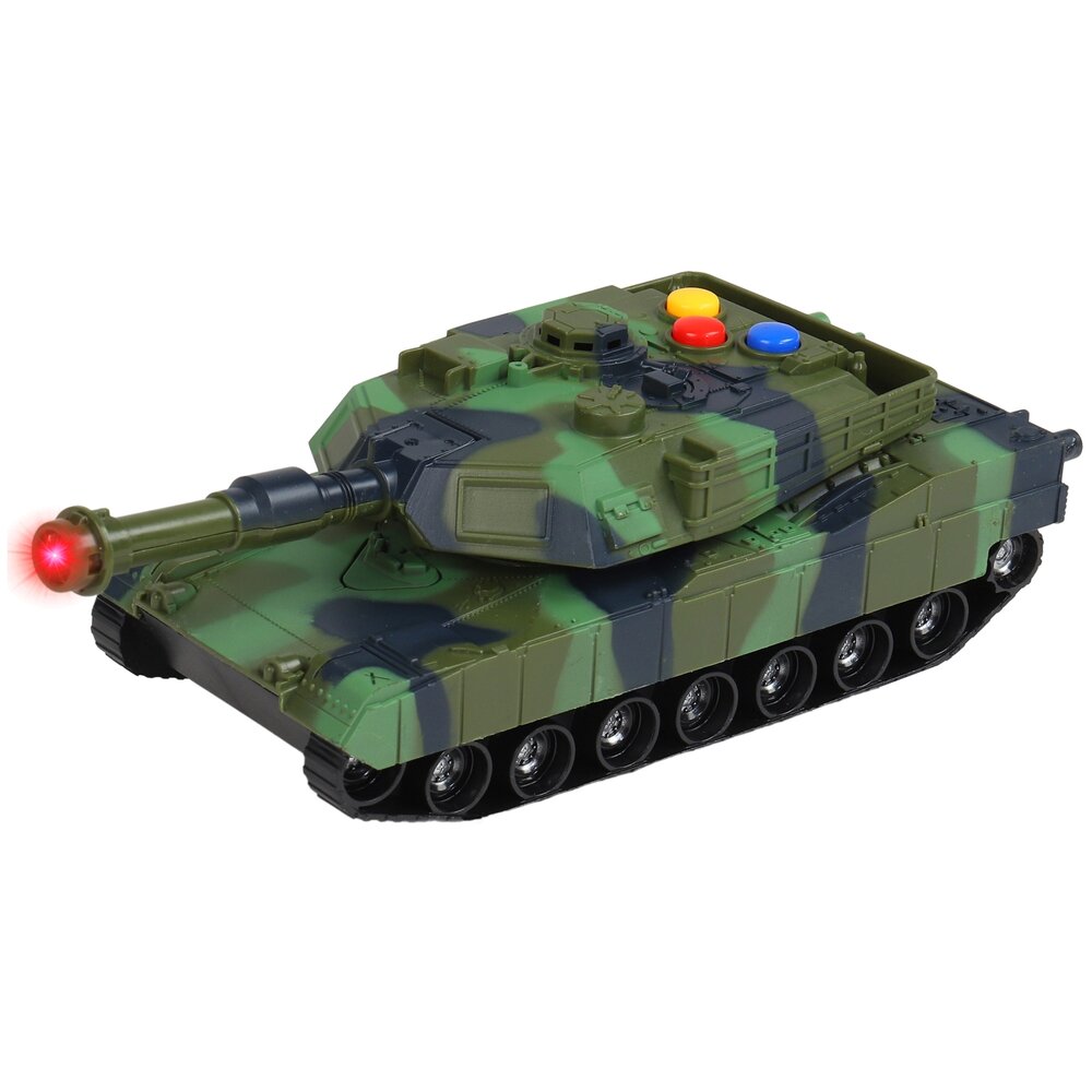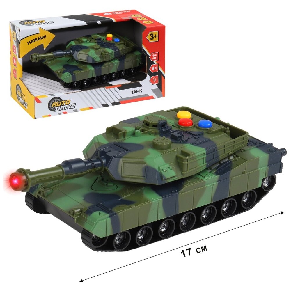 Машинка детская инерционная Танк ТМ AUTODRIVE, на батарейках, игрушка для мальчиков, военная машинка, игрушка для малышей, свет, звук, зеленый, в/к 29,5*12*15,5см