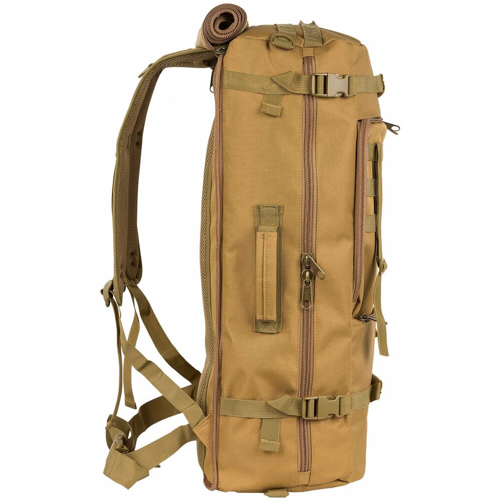 Рюкзак- трансформер полар – это универсальный рюкзак для города и путешествий. Рюкзак является практичным и удобным для повседневной носки и одновременно дорожной сумкой. Модель выполнена из плотной холщевой ткани повышенной прочности с водоотталкивающей пропиткой ПВХ и представлена в двух популярных расцветках (синей и оливково-песочной). Данный рюкзак прекрасно подходит любителям совмещать активный отдых с городской повседневной жизнью, так как он очень удобен в эксплуатации, а его ткань особо устойчива к разрывам и истиранию. При необходимости рюкзак легко трансформируется в большую дорожную сумку, если взять его за боковую ручку и убрать лямки под дополнительное отделение, отстегнув его сверху и закрыв на молнию. Основное отделение закрывается на боковую пластиковую молнию, внутри есть отделение для ноутбука диагональю 15, 6”, спереди данной модели располагаются два вместительных накладных кармана. Широкие лямки анатомической формы регулируются для большего комфорта и имеют грудную стяжку. Дополнительный поясной ремень снижает нагрузку на позвоночник, регулируется по длине. По бокам у рюкзака есть утяжки с фастексами. На переднем кармане нашиты стропы, за них в походе можно закрепить дополнительное оборудование.