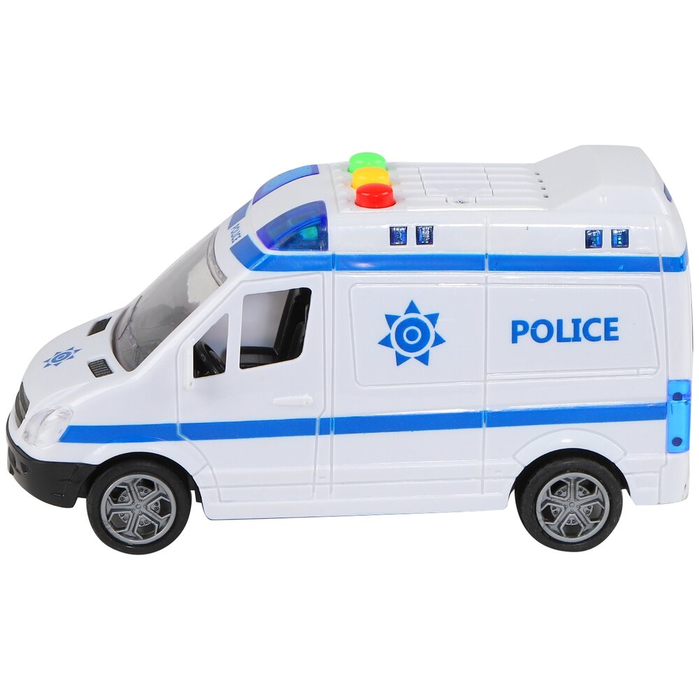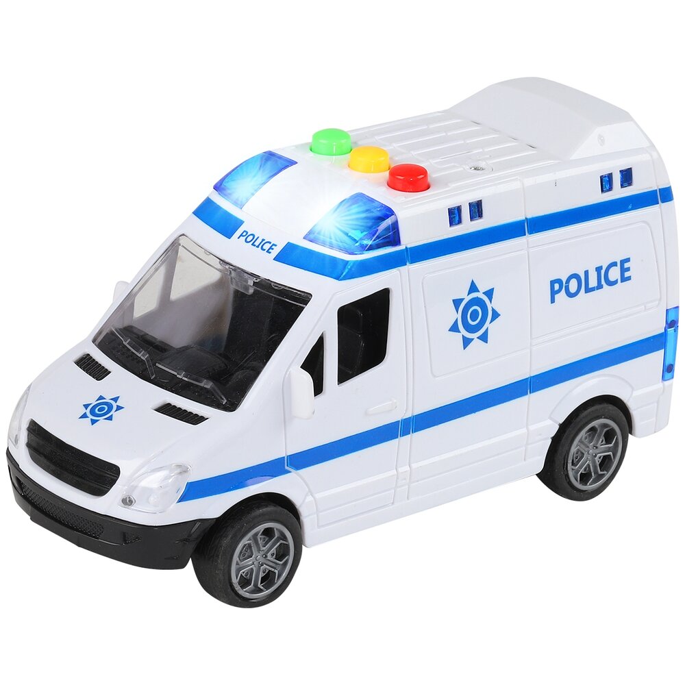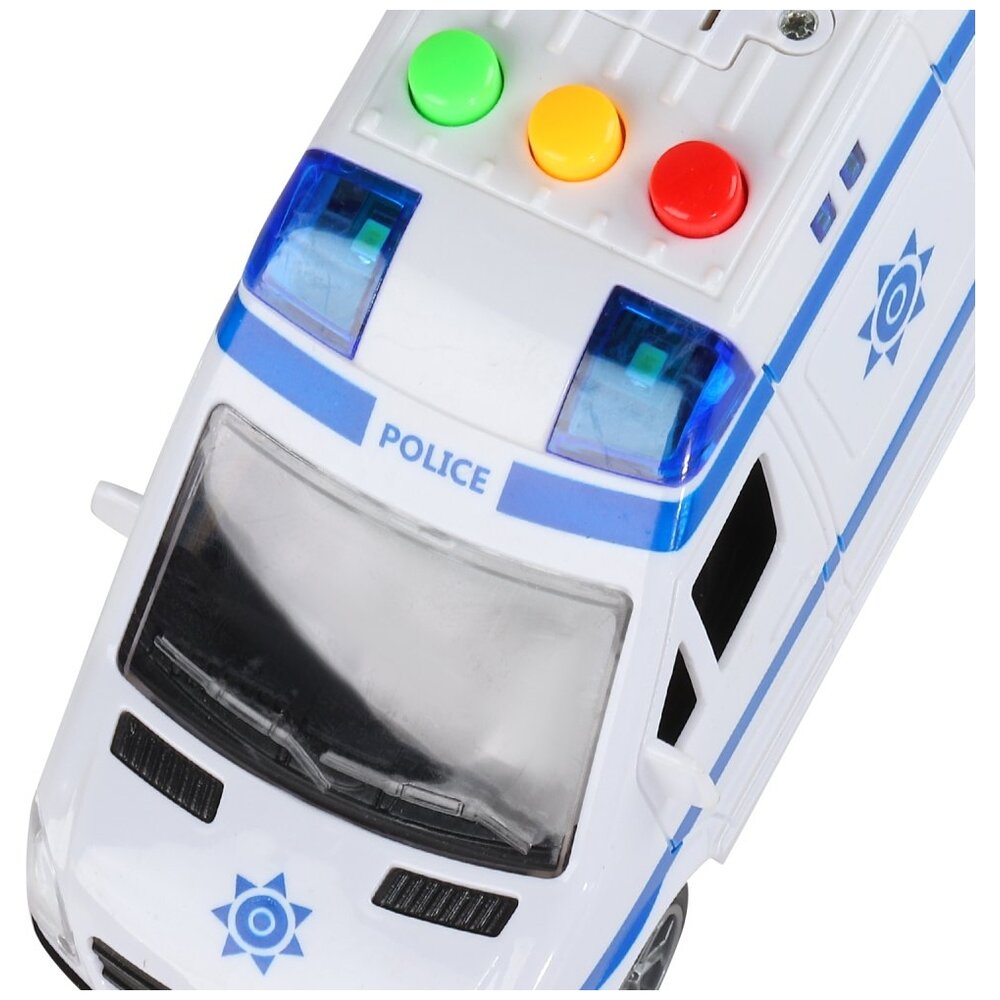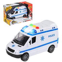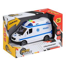 Инерционный полицейский фургон на батарейках AUTODRIVE выглядит очень реалистично, а световые и звуковые эффекты сделают игровой процесс еще более увлекательным. С такой машинкой ребенок почувствует себя настоящим Полицейским У машинки горят проблесковые маячки, а сама спецтехника имитирует звук зажигания двигателя Благодаря инерционному механизму игрушка перемещается самостоятельно, стоит только немного подтолкнуть машину вперёд или назад, а затем отпустить, и она поедет сама. Игры с транспортом тренируют: - визуальное и слуховое восприятие, - координацию движений, - внимание, - фантазию. Игрушка выполнена из качественных, безопасных для детского здоровья материалов. Цвет: бело-синий Возраст: 3+ Размер упаковки: 19*9*12,5см Батарейки 3*AG13 вставлены в игрушку