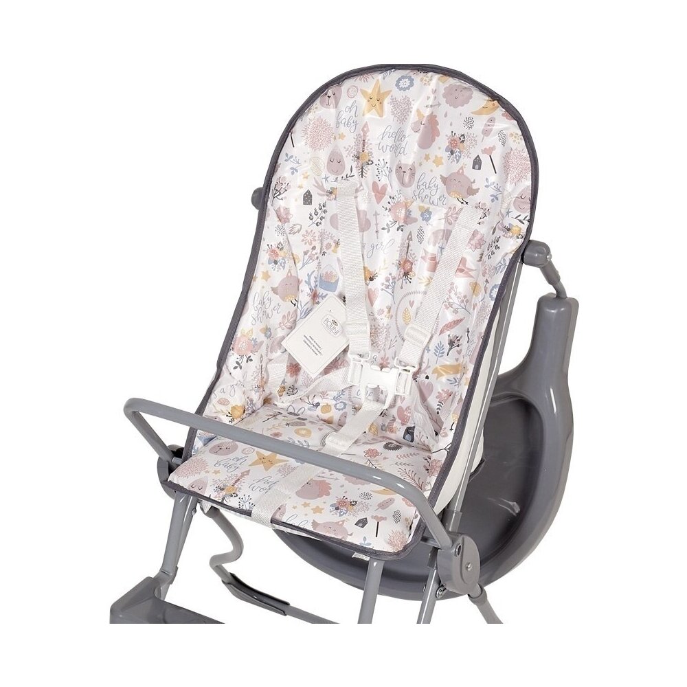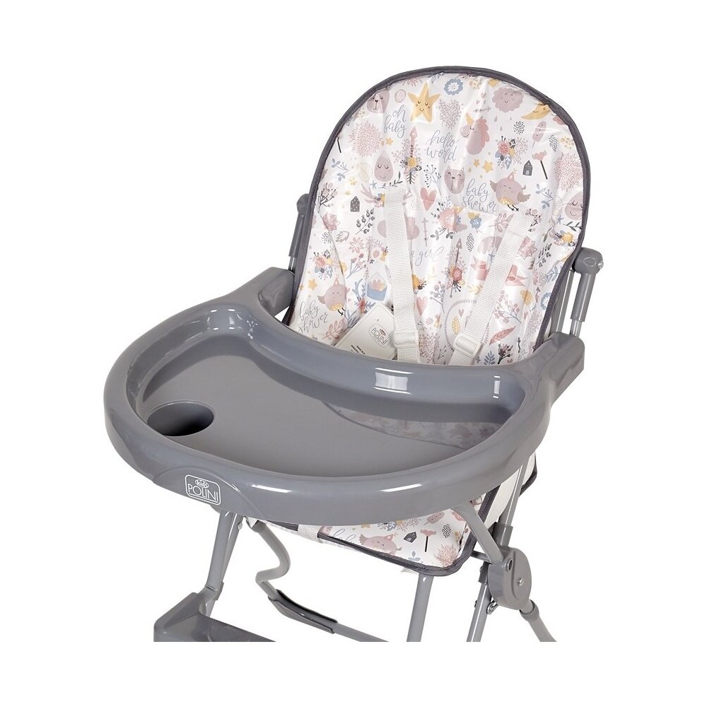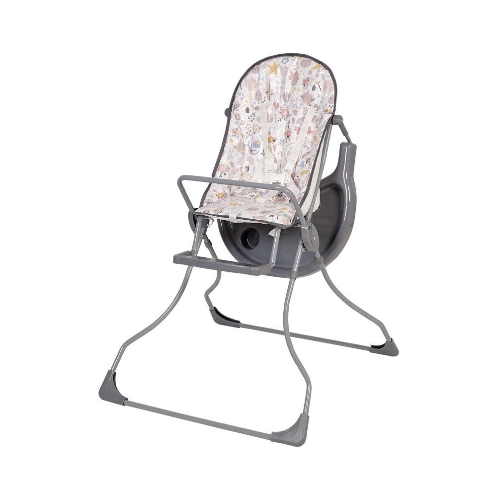 - большой столик с углублением для посуды- пятиточечный ремень безопасности- подставка для ног- съемное моющееся сидение- легкая и устойчивая конструкция- для детей от 6-ти месяцев до 3 лет.Размеры (ГхШхВ) – 77х69х99 см.