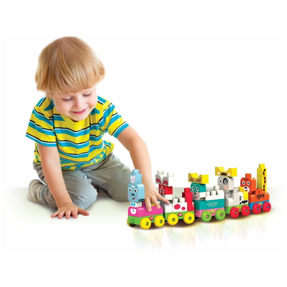 «Talky Blocks кнопочка» – это развивающий конструктор нового поколения. Крупные яркие детали разработаны специально для малышей, они легко соединяются и разъединяются. В игровом наборе «Зайчик» малыш найдет 10 кубиков с картинками и музыкальную каталочку. Собери на музыкальной платформе-каталочке забавного зайчика, нажми на нотку – игрушка оживет! Катай игрушку, слушай 10 песенок, мелодий и звуков. Все детали серии «Talky Blocks кнопочка» совместимы друг с другом! Соберите несколько наборов серии – и у вашего ребенка будет мегаконструктор! Он соединит всех зверят на колесиках вместе – и получится весёлый поезд. Но еще интереснее комбинировать детали из разных наборов и придумывать разных фантастических животных. Talky Blocks предлагает безграничные возможности для детского творчества!